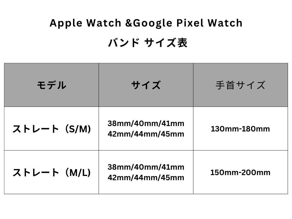 Google Pixel WatchバンドもApple Watchバンドのサイズと共通です。・Apple Watch 10シリーズの42mmは38mm/40mm/41mmと互換性があり、46mmは42mm/44mm/45mmと互換性があります。