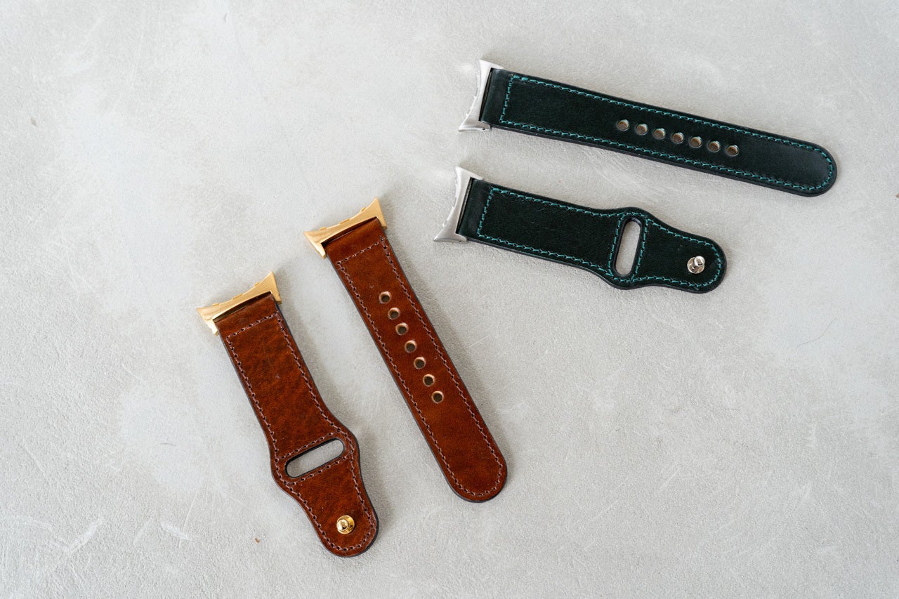 多くのApple Watchユーザー、Google Pixelユーザーが愛用するシリコン製のスポーツバンドの使いやすさを、私たち独自の視点で再解釈し、レザーバンドに昇華させました。