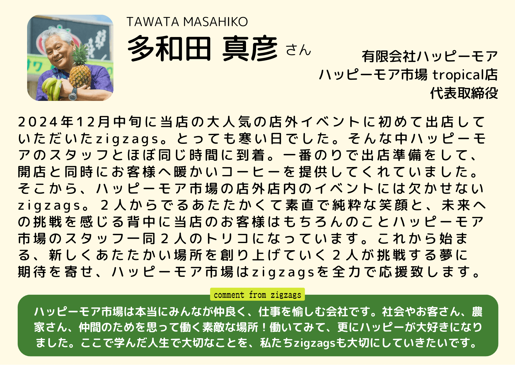 中には、実際に店舗ができてからのリターンもございますので、楽しみにお待ちいただけると幸いです。複数のリターンを選択し、支援することも可能です。また、とにかくzigzagsをサポートしたい!という方、金額の上乗せもできますので、ぜひご検討ください!!
