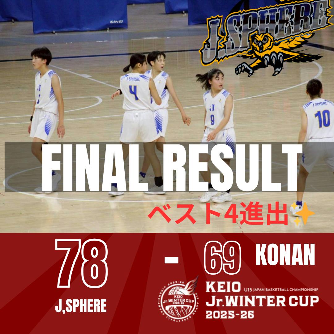 昨日1/6行われたジュニアウィンターカップにて、J.sphereは三回戦を突破し、強敵・大阪KONANに打ち勝ってベスト4進出を果たしました。