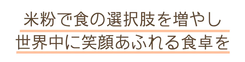 弊社のミッションでもある「米粉で食の選択肢を増やし、世界中に笑顔あふれる食卓」を広めていきます。