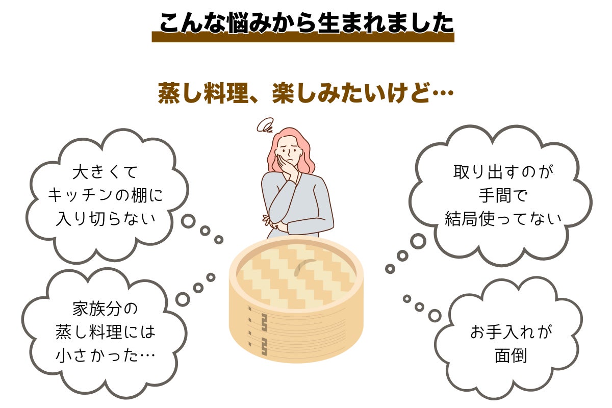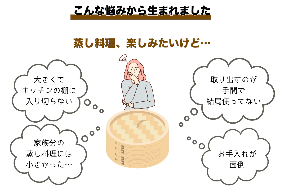 蒸し料理は、ヘルシーで美味しく、素材の味も引き立ち、見た目もきれい。蒸籠(せいろ)を愛用している方も多く、私たちもその魅力に惹かれてきました。でも一方で、「大きくて出しづらい」「お手入れが面倒」「収納場所に困る」など、せっかく買ったのに、だんだん使わなくなってしまったという声もよく聞きます。