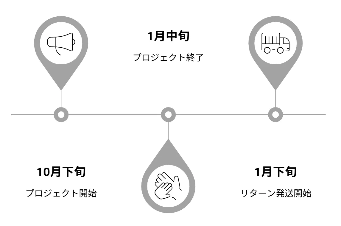 A. リターンの発送は、1月下旬より順次開始いたします。