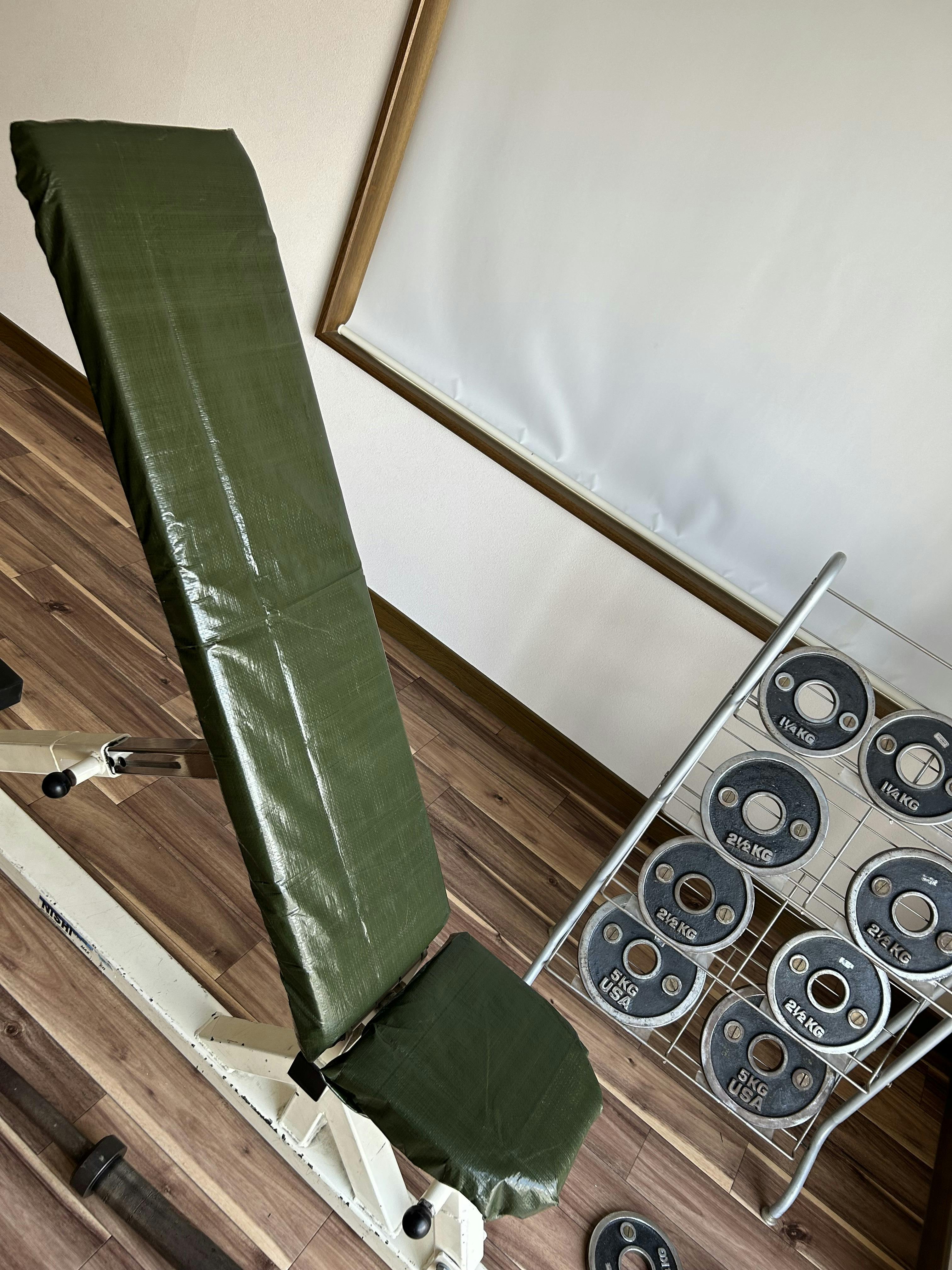 今回は、トレーニングベンチの表面をレジャーシートを使って自作でリニューアルしました!