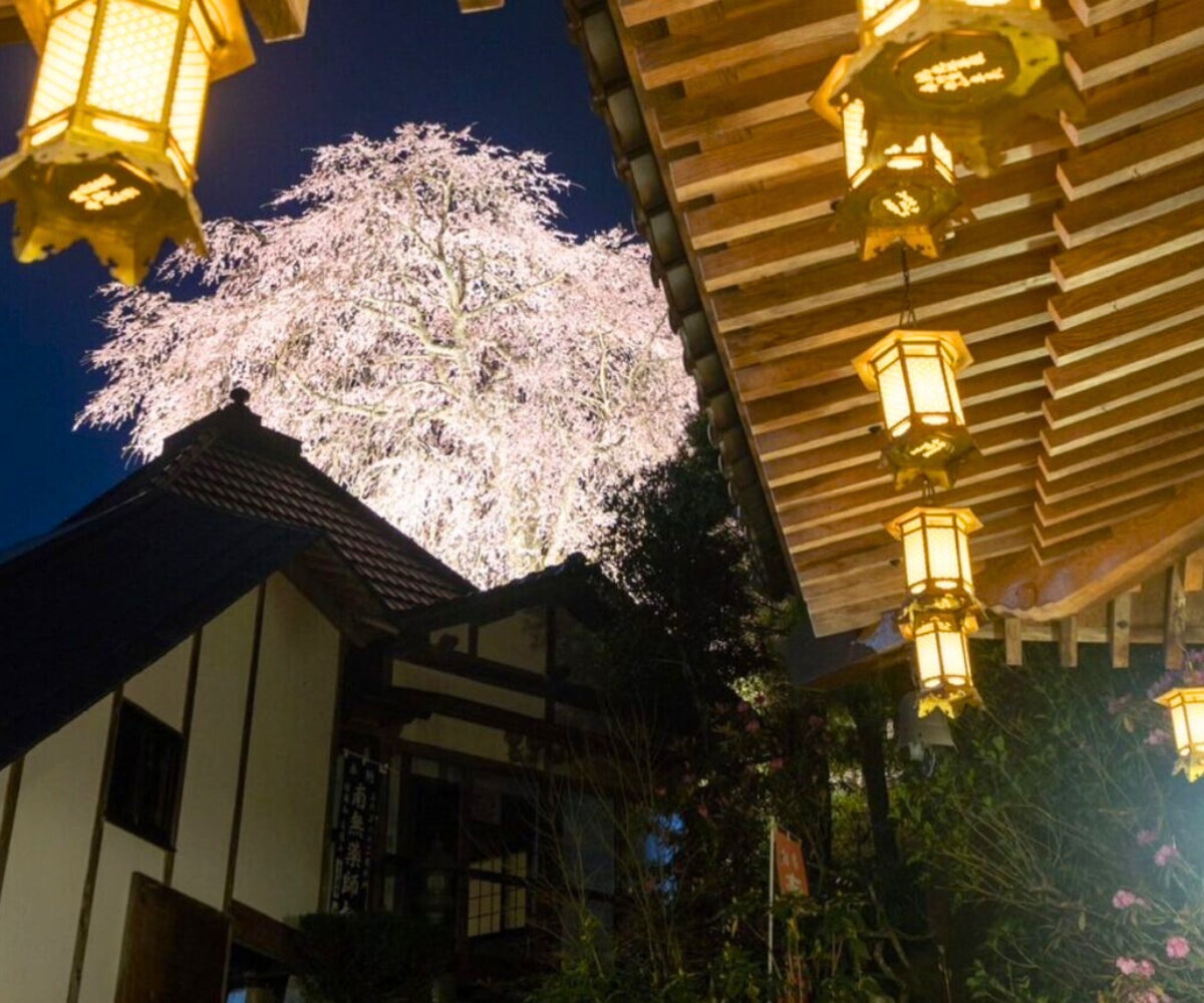 境内に咲き誇るしだれ桜をライトアップし、夜間特別拝観を行っております。幻想的な桜の下、静かにお参りいただけます。期間中は午後9時まで受付をしております。