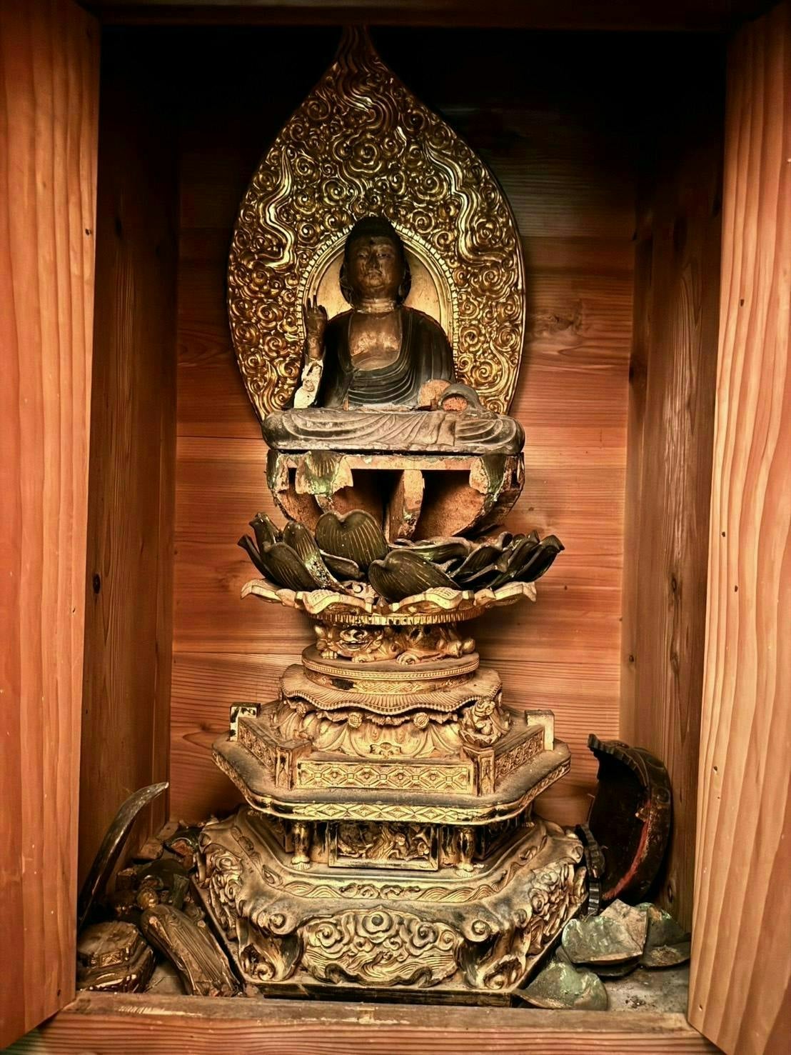 【修繕された阿弥陀如来の前で、あなたの願いを大切にお祀りいたします】