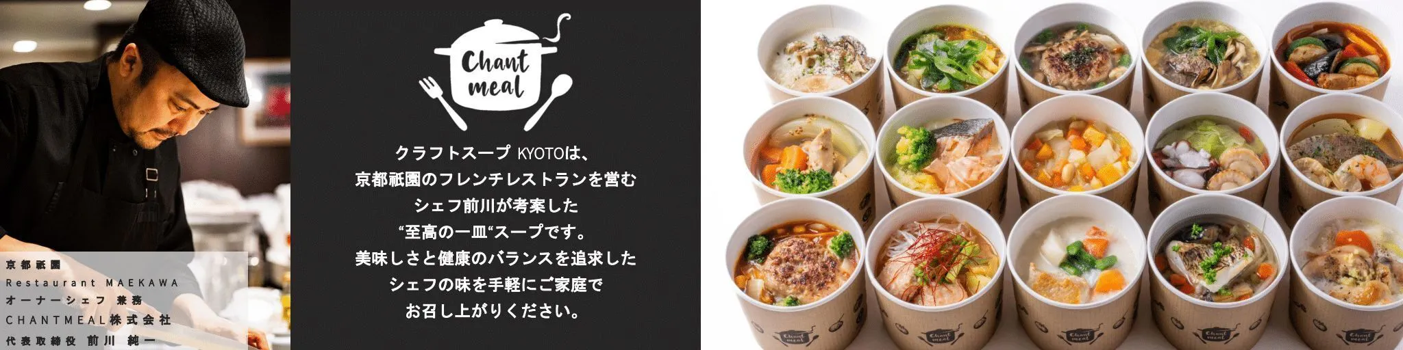 今回は「食べるスープ」として、前川の料理の経験と技術を詰め込み、旨味をぎゅっと凝縮したやさしいスープを表現しており、それがCHANTMEAL(チャントミール)のクラフトスープです。肉・魚・野菜の具材をごろっと詰め込み、食べ応えがあり、出汁にこだわった、栄養価も高いスープです。冷凍にしたことで美味しさと健康のバランスを追求できました。この至極のスープを是非皆様に味わっていただきたく思っております。