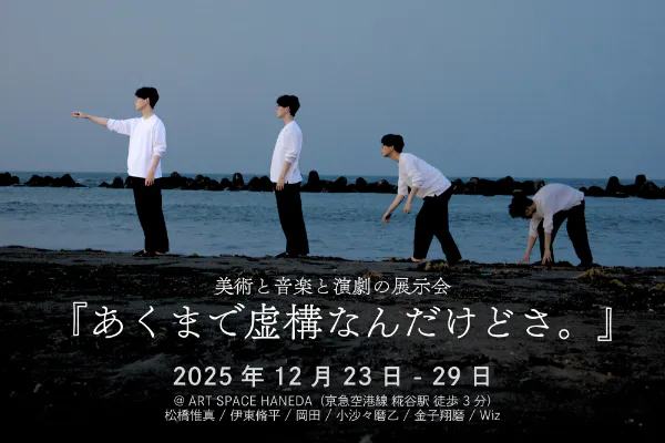 『あくまで虚構なんだけどさ。』は、美術・音楽・演劇を横断した体験型展示会です。2025年12月23日〜29日、京急空港線糀谷駅の ART SPACE HANEDA にて開催します。
