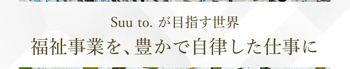 関わる人が増えるほど、Suu to.の活動はさらに広がる。この循環が続くことで、福祉はより自律した仕事として成り立ち、関わるすべての人の心も豊かになっていく。私たちは、そんな未来を本気で目指しています。