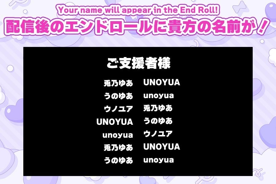 🐰新モデルお披露目配信のエンドカードに、ご記入いただいたお名前をエンドロールの形で掲載いたします!