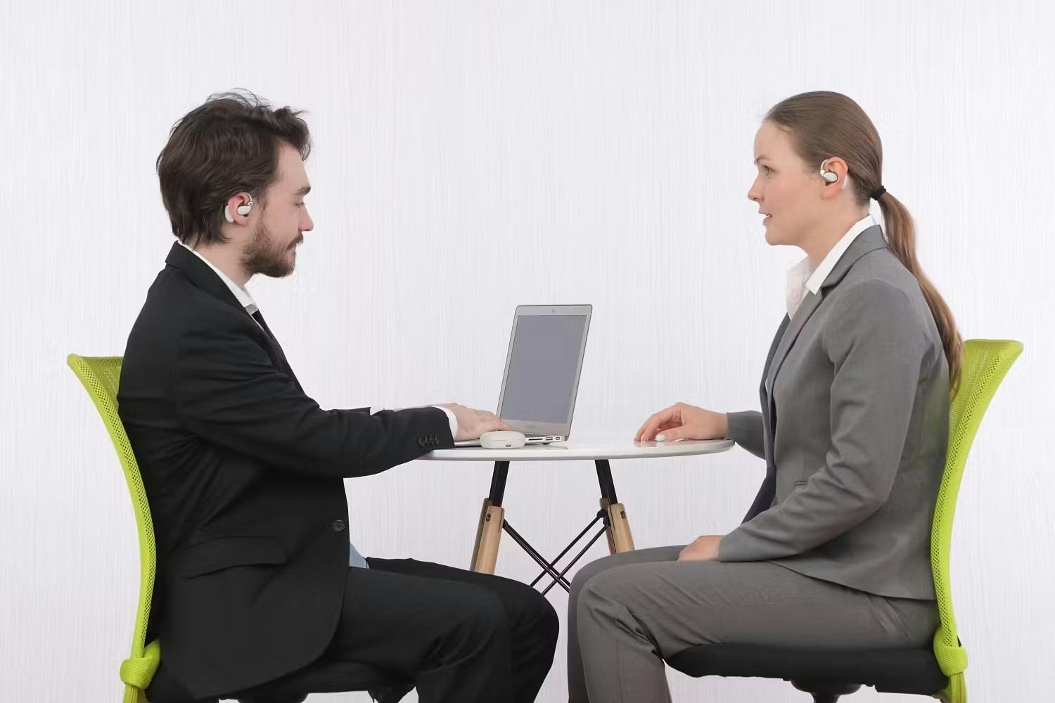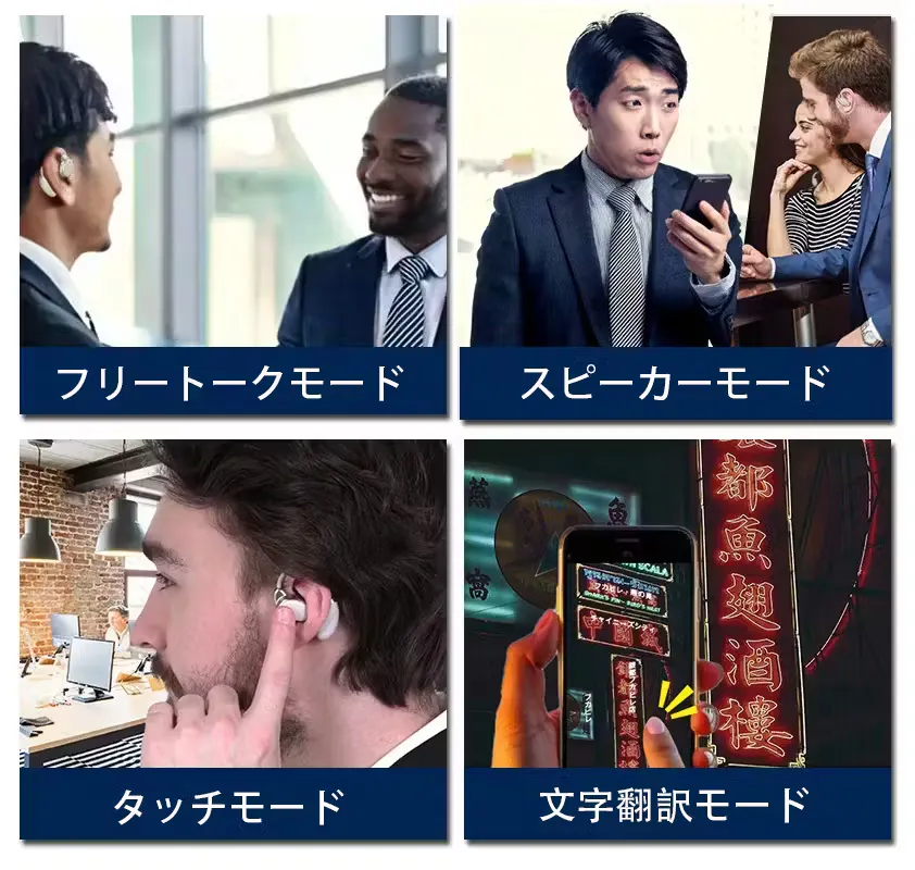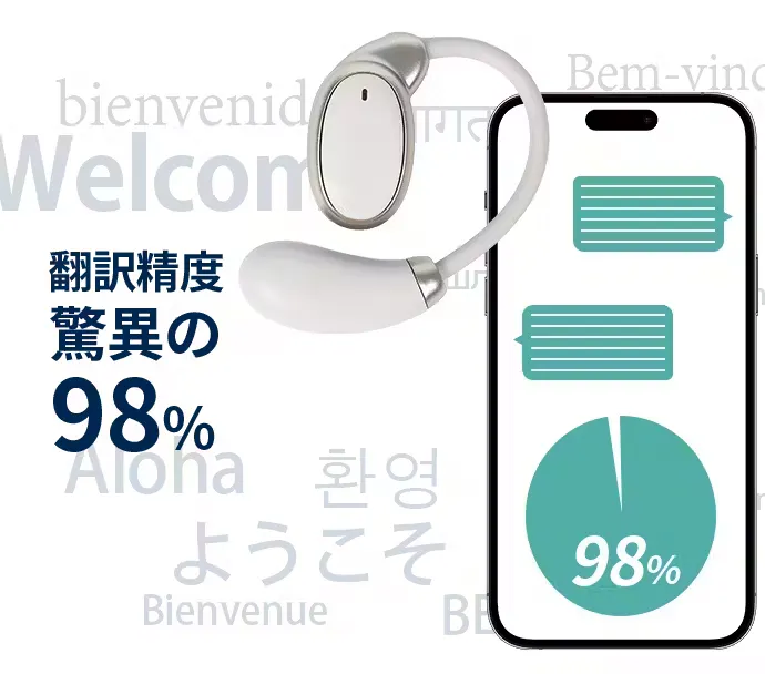 翻訳精度は最大98%という正確さと、両手が自由になることでより会話に集中ができ、商談中の資料確認や身振り手振りもスムーズに行え、あなたの存在感を高めることもでき、時間と心の余裕を与えるイヤホン型翻訳機なのです。
