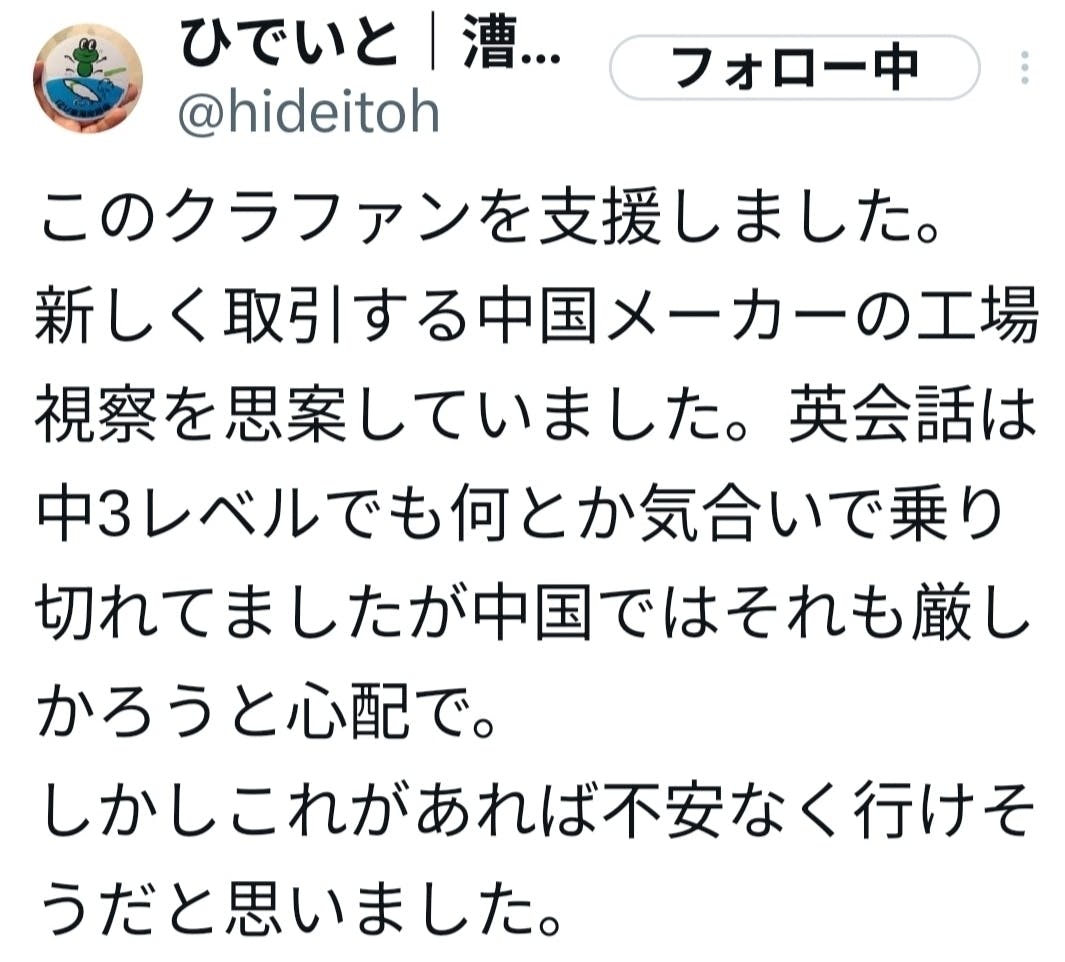 2025/10/23 07:00いよいよ明日、スマホに取り付けるだけですぐに使えるスマホリング型翻訳機「X10」が限定発売開始となります!最大146言語対応、1台9役。ビジネスの会議、観光地やお店での接客、旅行先でのちょっとした会話も、これ1台でスムーズに。音声翻訳・テキスト入力・ビデオ通話翻訳・OCR翻訳など多彩な機能で、コミュニケーションの壁を一気に取り払います。忙しいあなたのスマホにスマートに装着でき、長時間バッテリー・高速翻訳でストレスフリー。ビジネスの現場はもちろん、普段の生活でも頼りになるパートナーになること間違いなしです。未来のグローバルコミュニケーションを、今、あなたの手に。先着で「最大50%OFF」で手に入れることができます。数に限りがありますので、明日からの限定発売をお見逃しなく!詳しくは下記ページへ。▼限定発売ページはこちら▼https://camp-fire.jp/projects/869087/view もっと見る