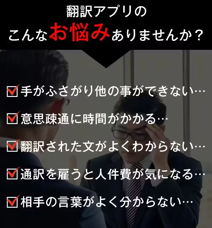 スマホの翻訳アプリなどを使うと手がふさがるだけではなく、文字入力や音声認識に時間がかかり、外国人とスムーズなコミュニケーションがとりにくいと感じていませんか?