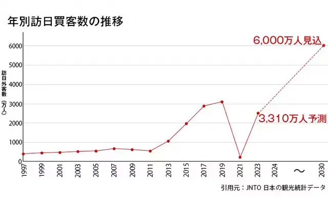 実際に日本政府観光局の発表では、コロナ前の2019年の訪日客が3188万人に対し、2024年度は3310万人と大幅増を予測。