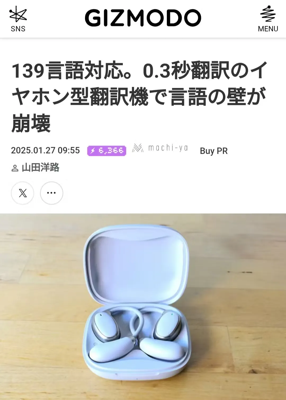 ギズモード様「139言語対応。0.3秒翻訳のイヤホン型翻訳機で言語の壁が崩壊」