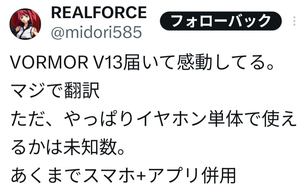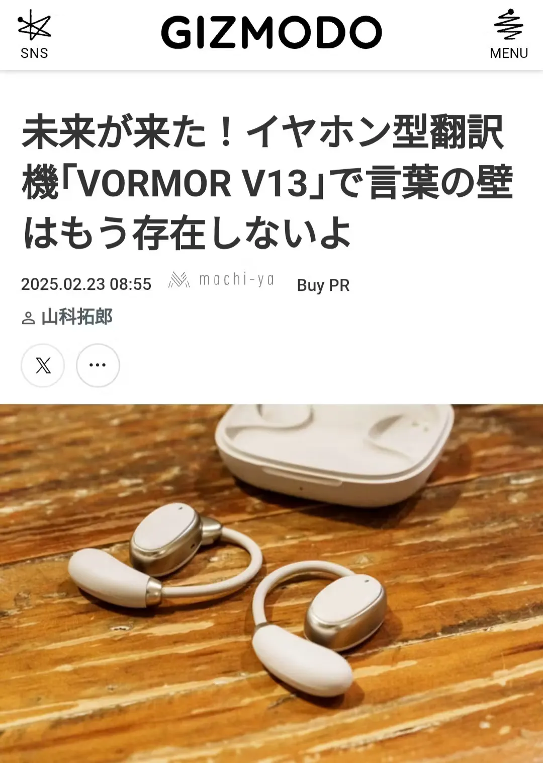 ギズモード様「未来が来た!イヤホン型翻訳機「VORMOR V13」で言葉の壁はもう存在しないよ」