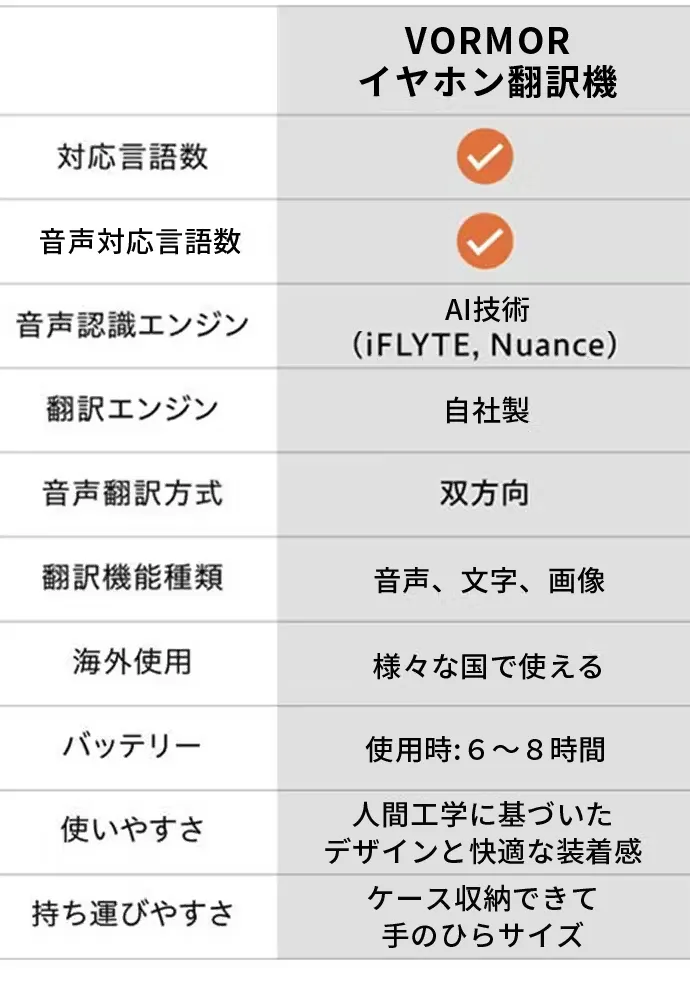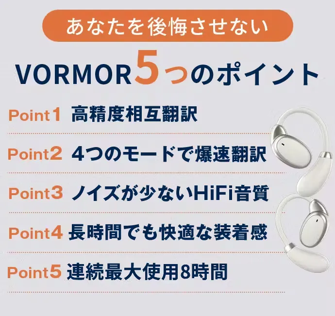VORMORスマートイヤホン翻訳機を生涯添い遂げるパートナーとして、ご愛用いただければ大変嬉しく思います。