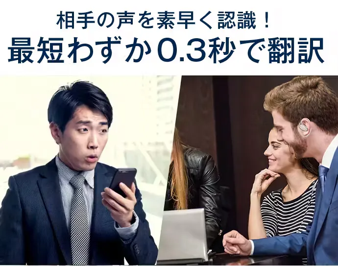 翻訳速度は最短0.3秒だから、会話の流れを止めることなく、スマートフォンを手に持つ必要もなく、相手に待ってもらう必要もありません。