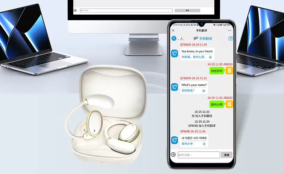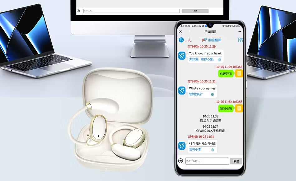 一般の翻訳アプリと違い、スマホ画面やマイクを介する必要が無いので、まるで会話しているかのようにコミュニケーションがスムーズ。