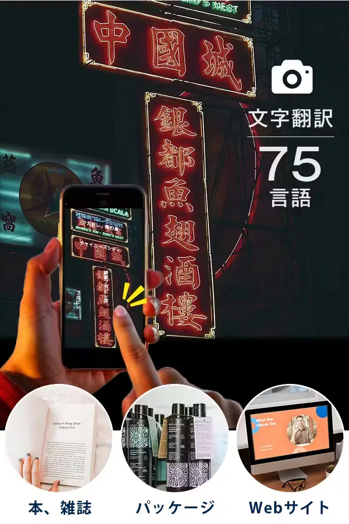 さらに、スマホのカメラを使い、文字認識による文字翻訳モードも行えるので、状況に合わせた使い方ができます。