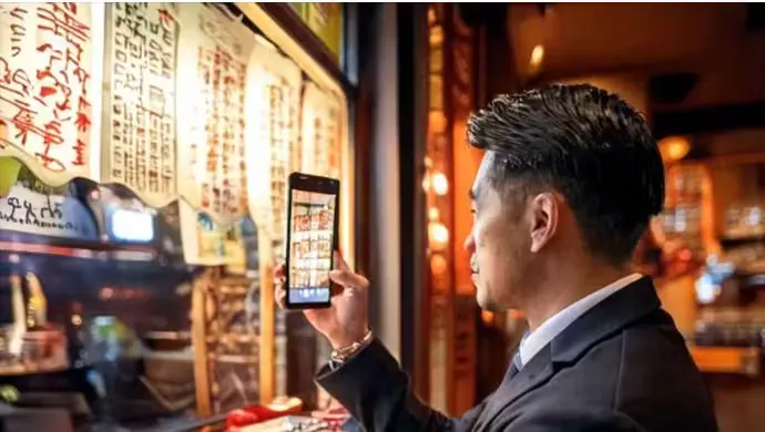 看板やメニューなどに掛かれた文字をカメラに写すと、OCRが画面内の文字を認識し、抜き出して自動的にテキスト化します。