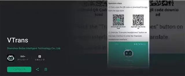付属のマニュアルにQRコードがあるのでスマホのカメラで読み取っていただくか、App StoreかPlay Storeで「VTrans」と検索していただき、アプリをダウンロードして下さい。