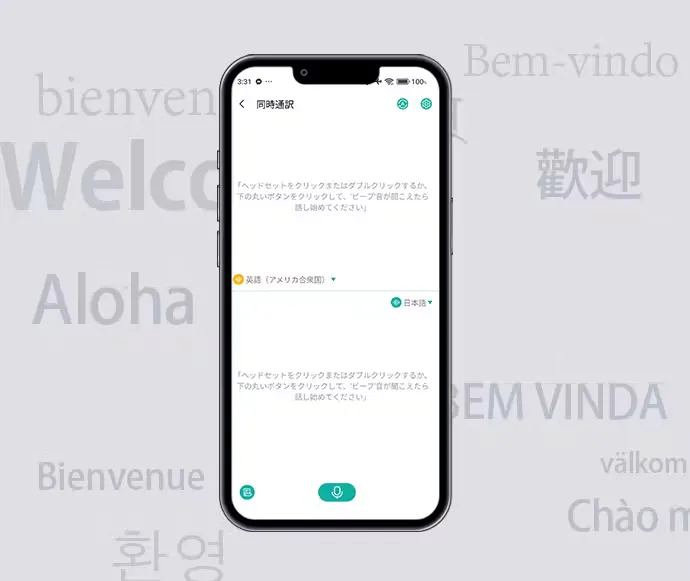 言語を設定し、画面中央の下部にあるマイクのアイコンを押すと翻訳を開始します。