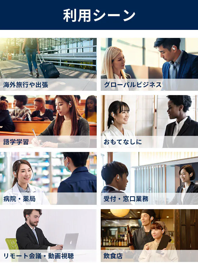 さまざまな特徴により、スマホアプリや通訳を介するよりも、外国人との会話を圧倒的にスムーズにします。