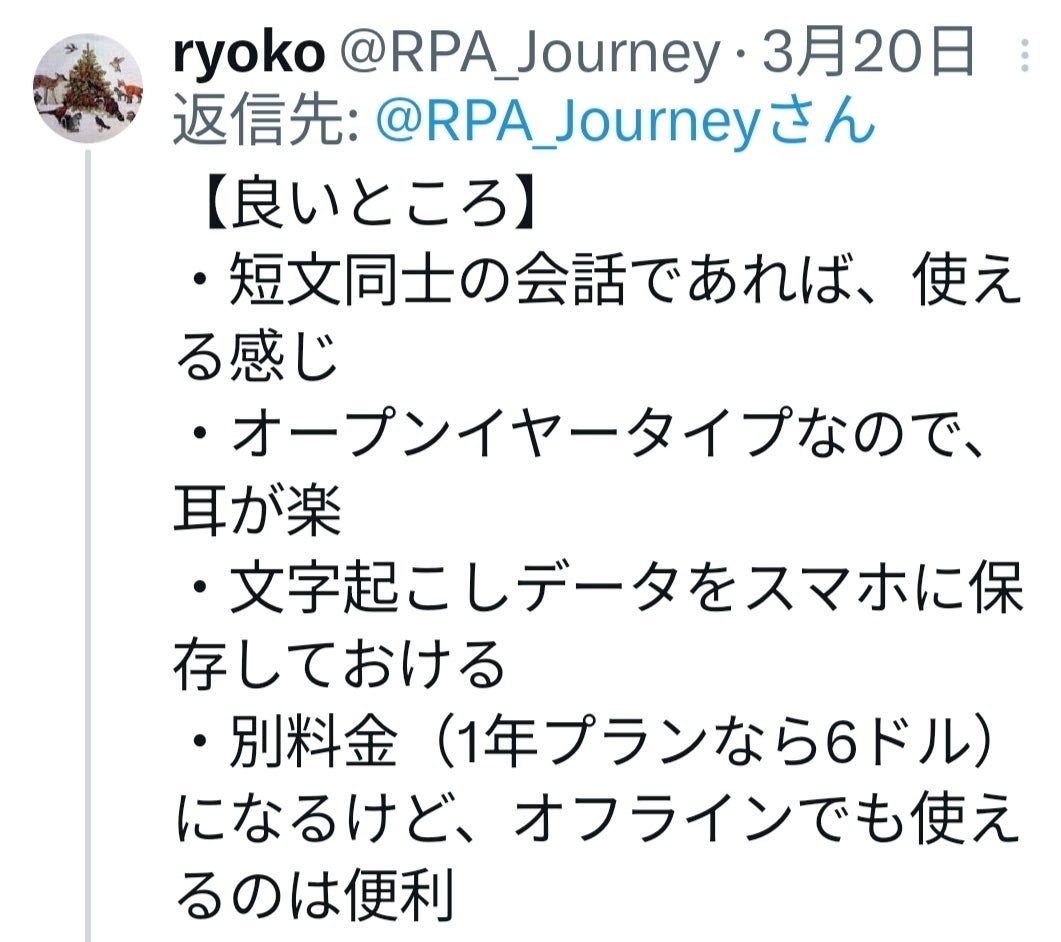 具体的には、フリートークモードなどで話し終わった後に、会話内容と翻訳文がテキスト音声ファイルとしてアプリに同期。