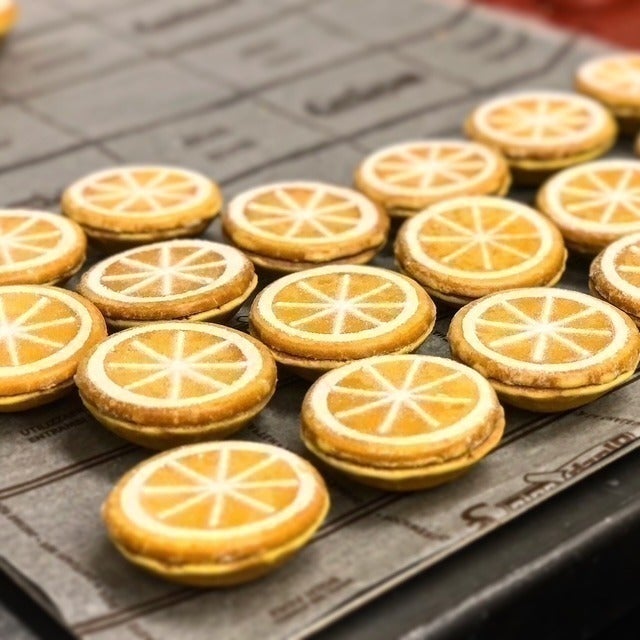 →レモンのクッキーの中にレモン風味のマシュマロ、トンカ豆のガナッシュクリーム