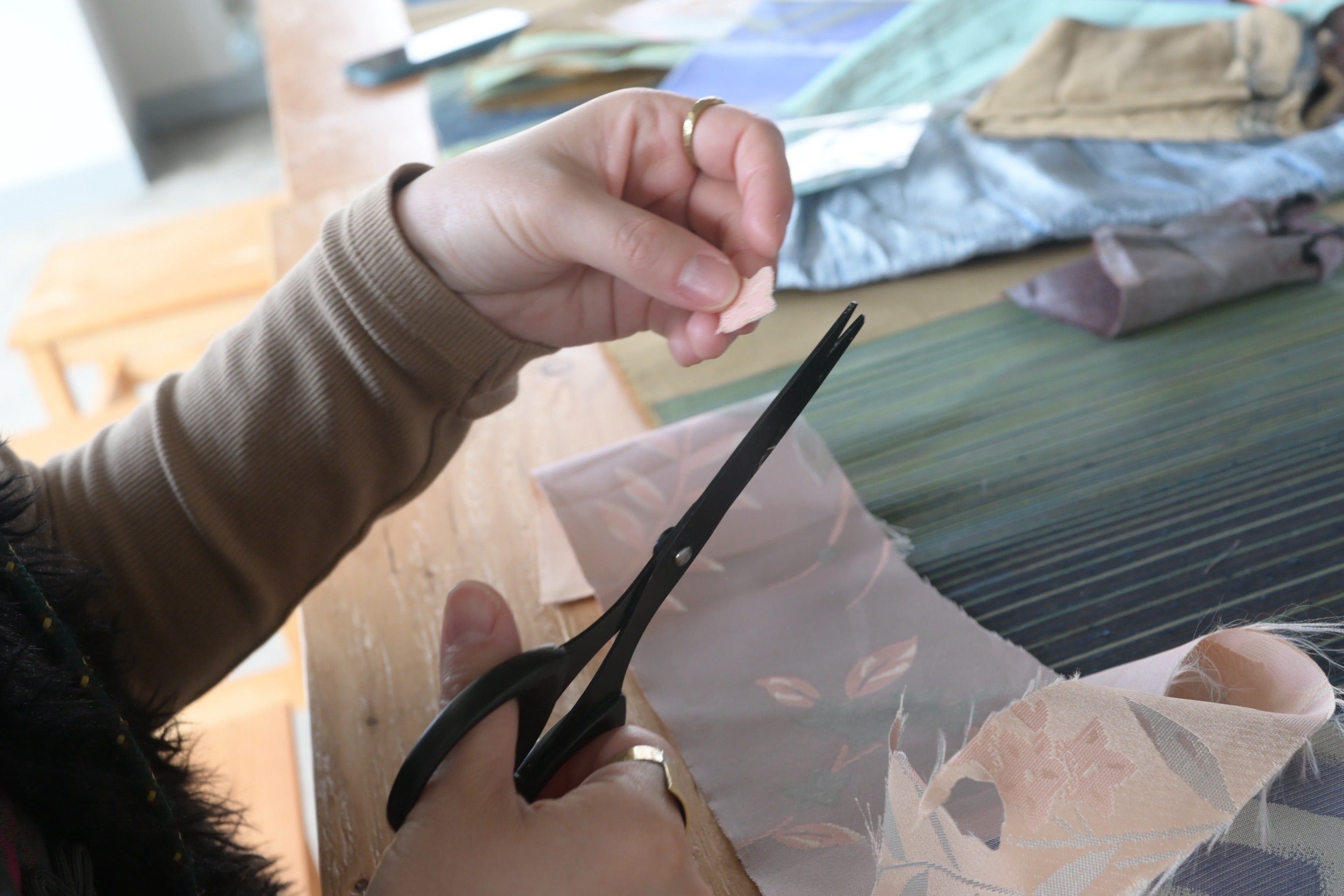 ある日、廃業されることになった地元の機屋さんから、美しい織物の生地を譲り受けることに。