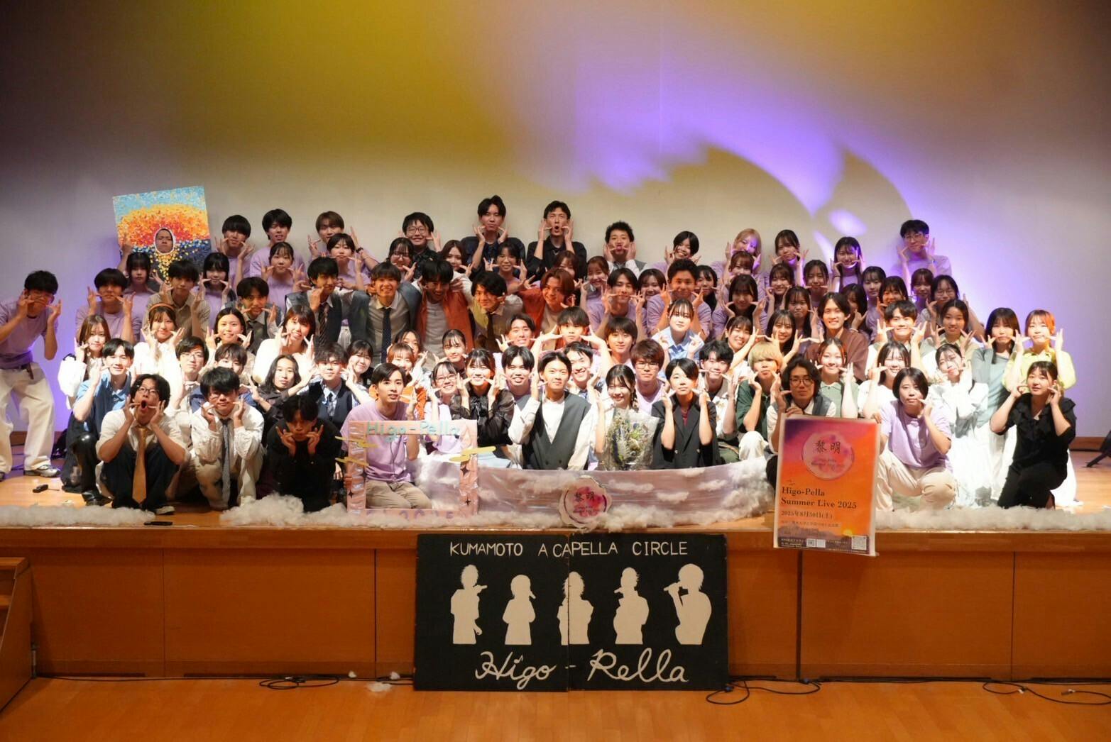 一昨年から、従来のサマーライブ・ウィンターライブを経験した人が少ない中でさまざまな試行錯誤をしてきました。ウィンターライブ【Reveal】、サマーライブ【Stargazer】を開催でき、10周年記念ライブでOB・OGの先輩方と同じステージに立つ機会も頂きました。そして、2025年の2月にはウィンターライブ【Film】の開催に漕ぎつけました。今回のサマーライブでは、これまで中心となって活されていた先輩方からバトンを受け取り、2,3年生を中心に「次世代が作るHigo-Pellaの今までとこれからをつなぐ最高のステージ」の実現のため日々奮闘しています。ステージに立つ演者の皆さんは、大学の授業の合間を縫ってパフォーマンス練習を重ねたり、運営に関わる皆さんも何度も会議をしてより良いステージになるよう各部署と話し合ったりしています。今回のウィンターライブで、アカペラのワクワクやドキドキを存分に感じていただけたらと思います。支援していただいた資金は照明機材の購入等に使わせていただきたいと思います!