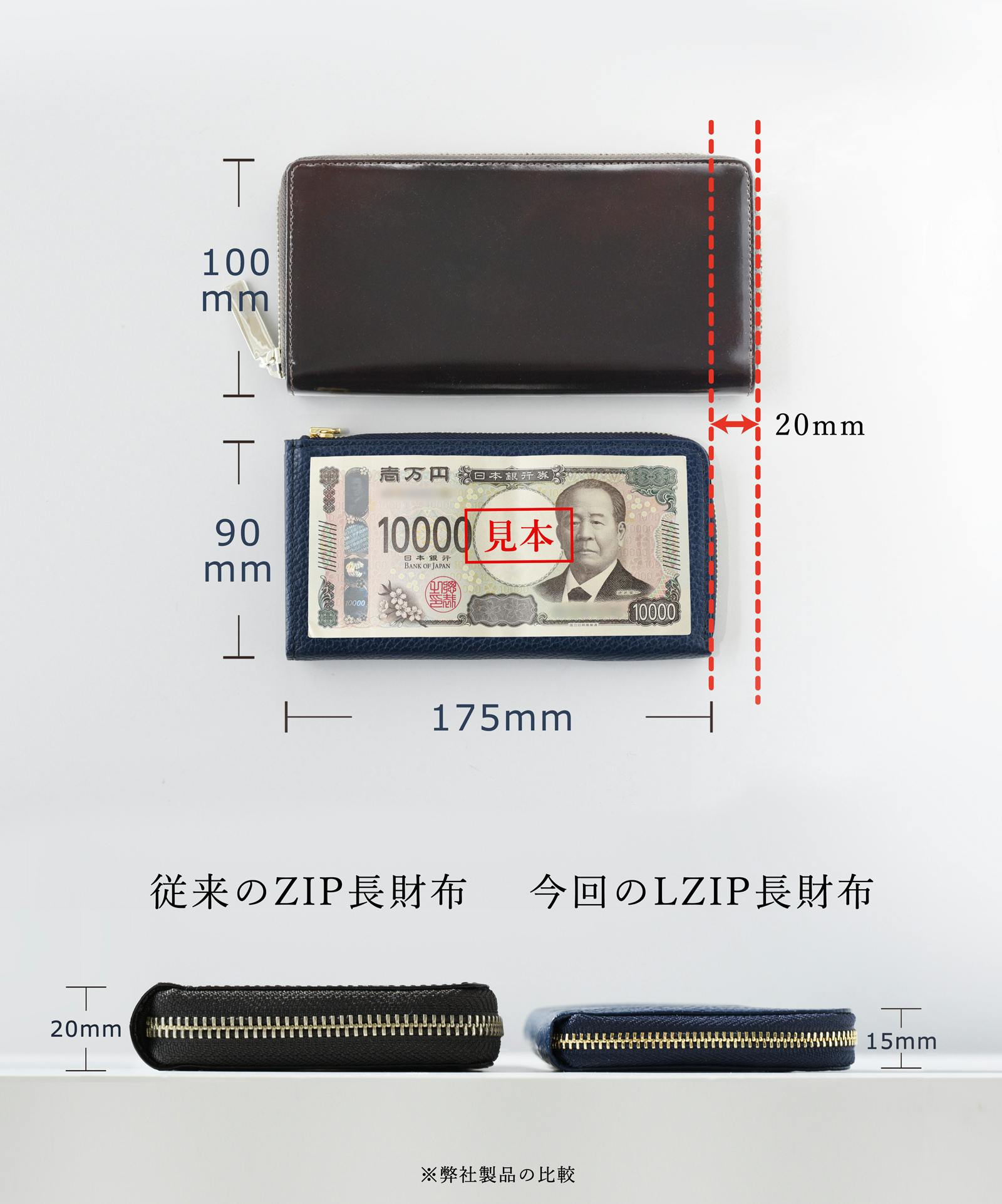 YOSHINAのLZIP財布は、自社ブランドのファスナー長財布の中でもっともコンパクトな一品です。