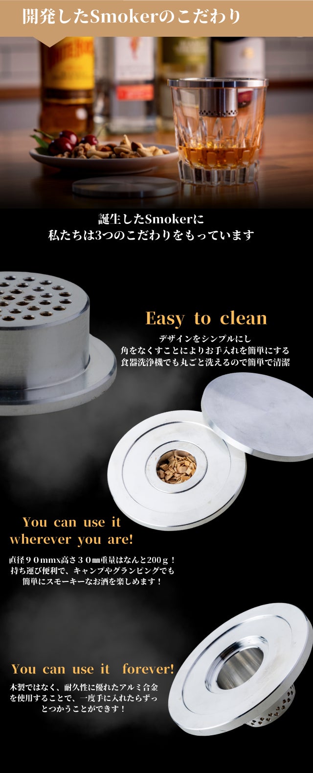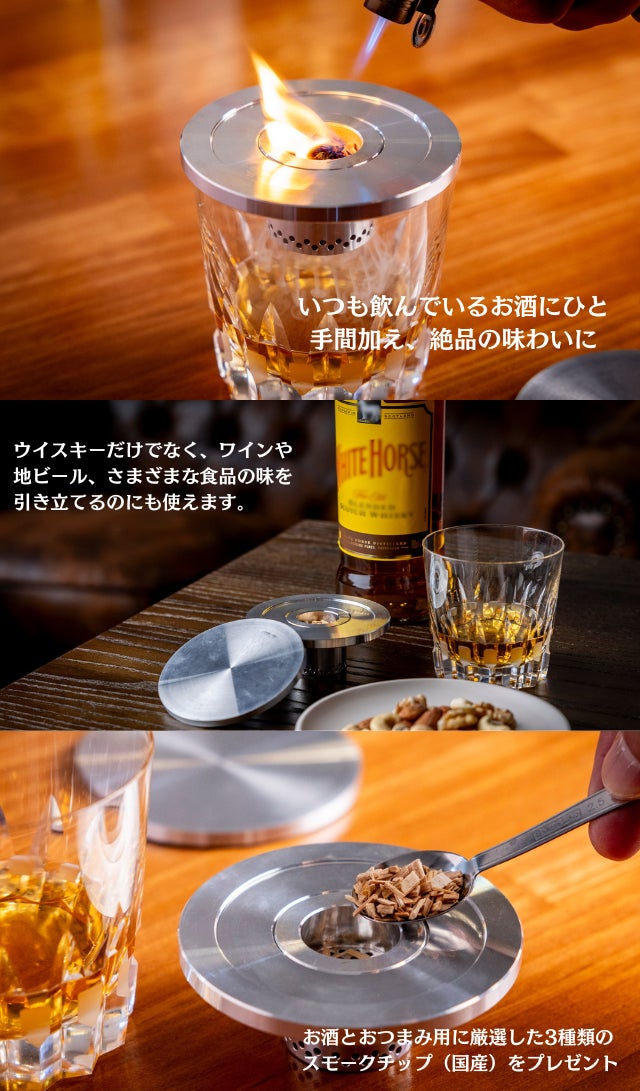 近年、スモークウイスキーを楽しむ人が徐々に増えてきていますが、これまでは木製の燻製器が主流でした。木製のスモーカーは焦げやすく耐久性に問題点がありました。