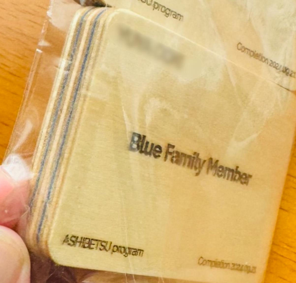 実はこの修了証、 地域ごとに素材を変え、クレジットカードサイズで製作していただいています。そこには、日程や名前も刻印されており、世界に1つの特別につくられる“非売品”のアートピースです。
