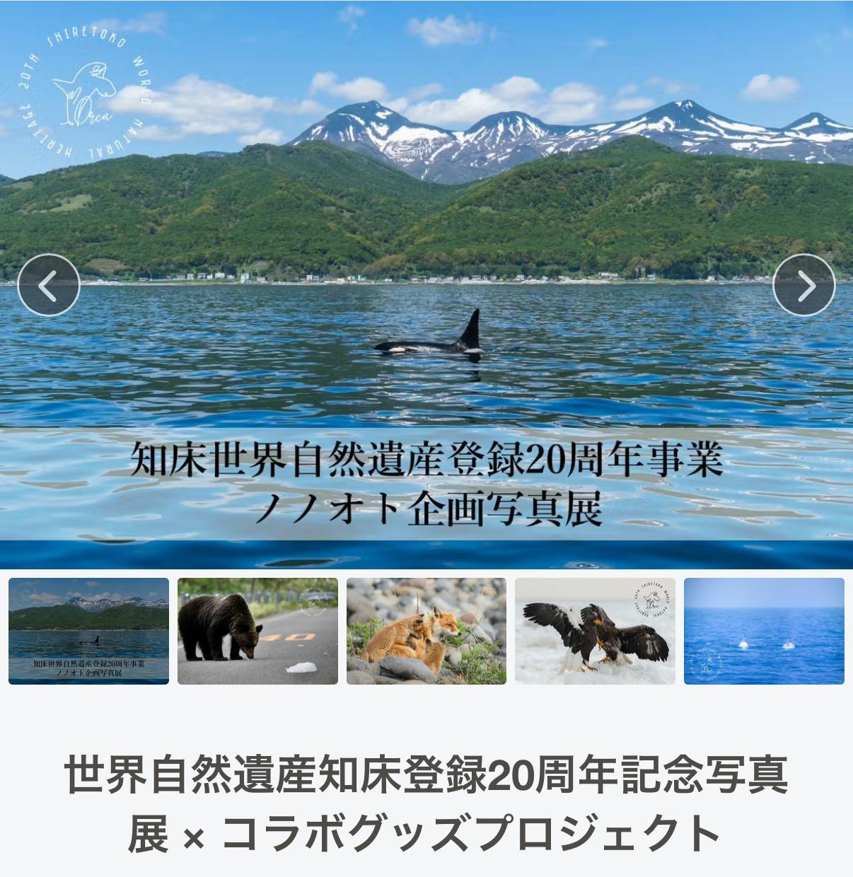 ・展示した写真の中から1枚A2サイズで木製パネル加工したものを提供(ヒグマ、シャチ、キタキツネ、シマフクロウ、マッコウクジラの中からお選びいただけます)