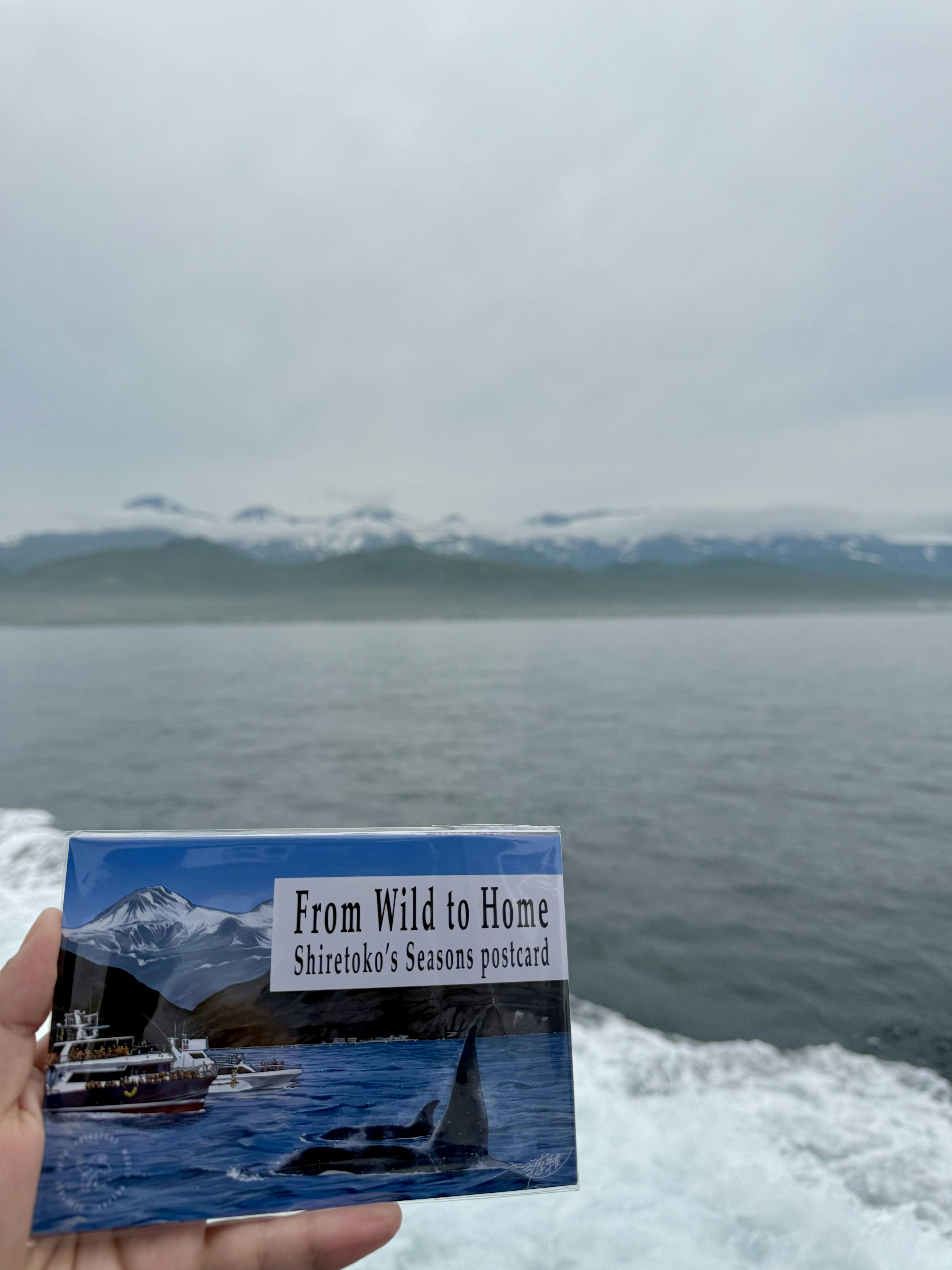 5枚1組のポストカードセット。知床の四季から1枚ずつで4枚。残る1枚は、漫画家・遊維さんが特別に書き下ろしてくれたイラストポストカードです。