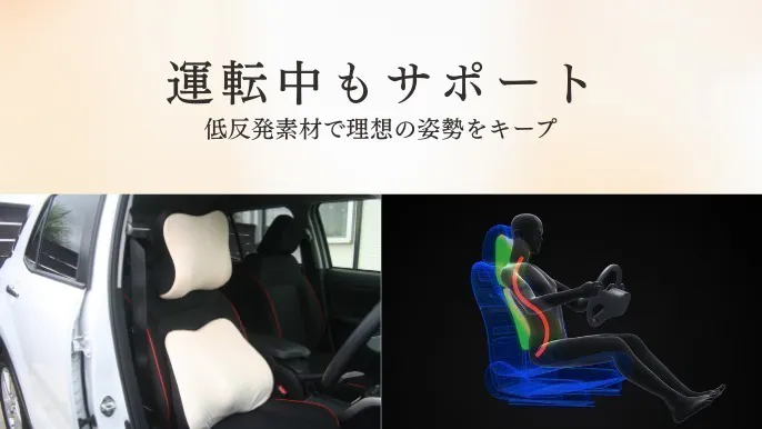 運転中に使用すれば、姿勢を理想のS字ラインへサポートし、