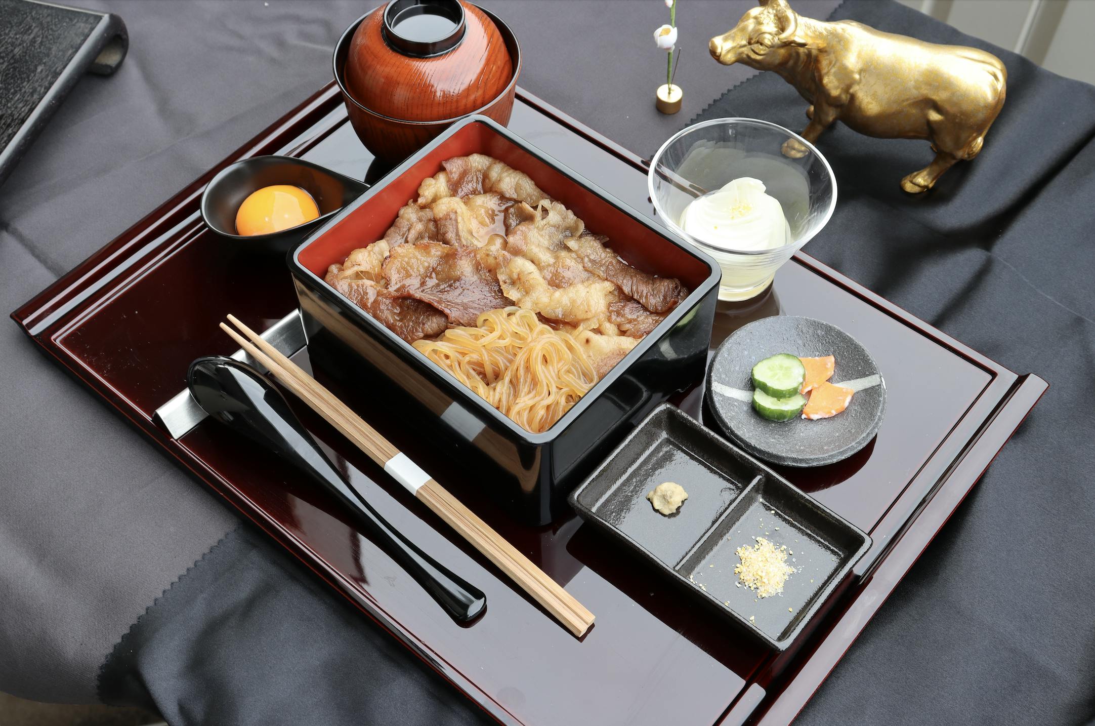 ・宮崎牛をふんだんに使用した『レアステーキ重』を食べて頂くため