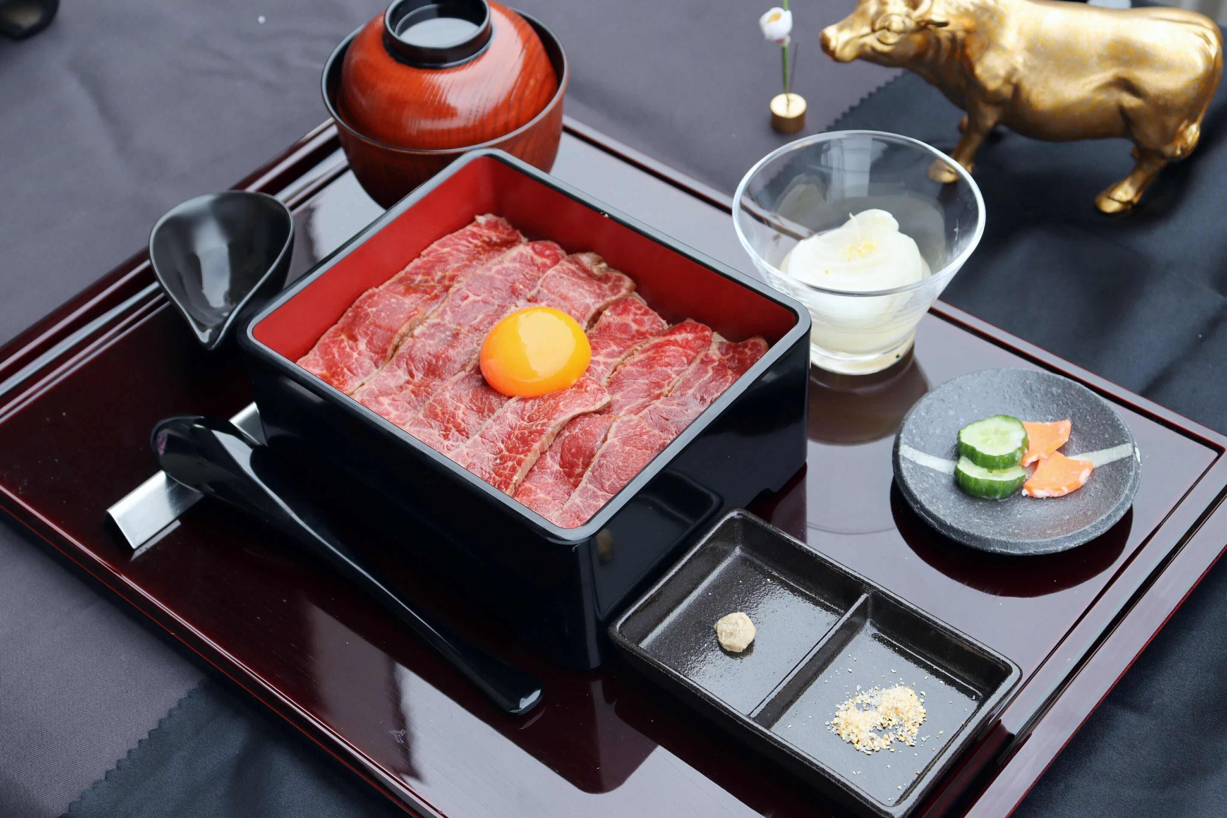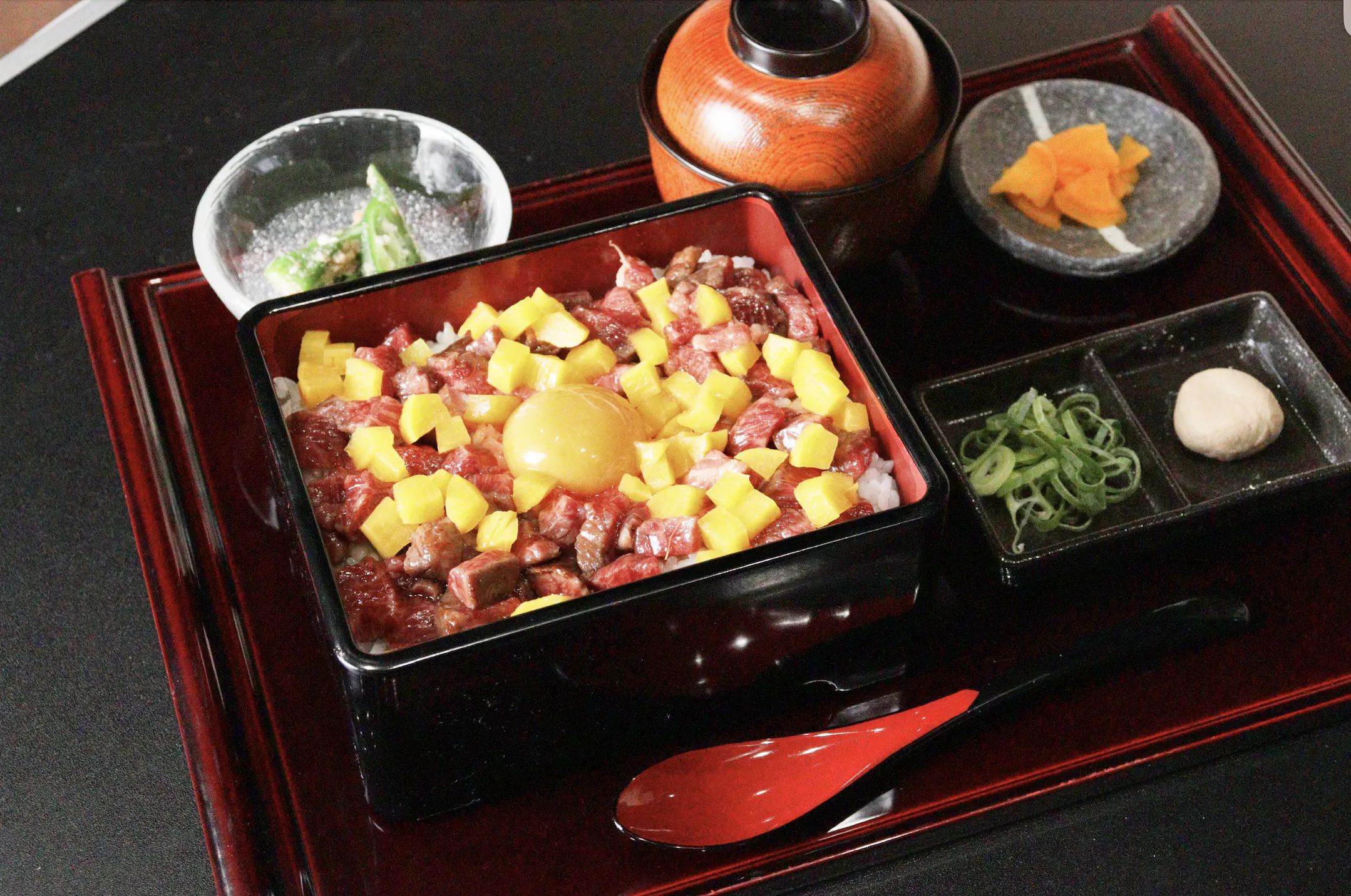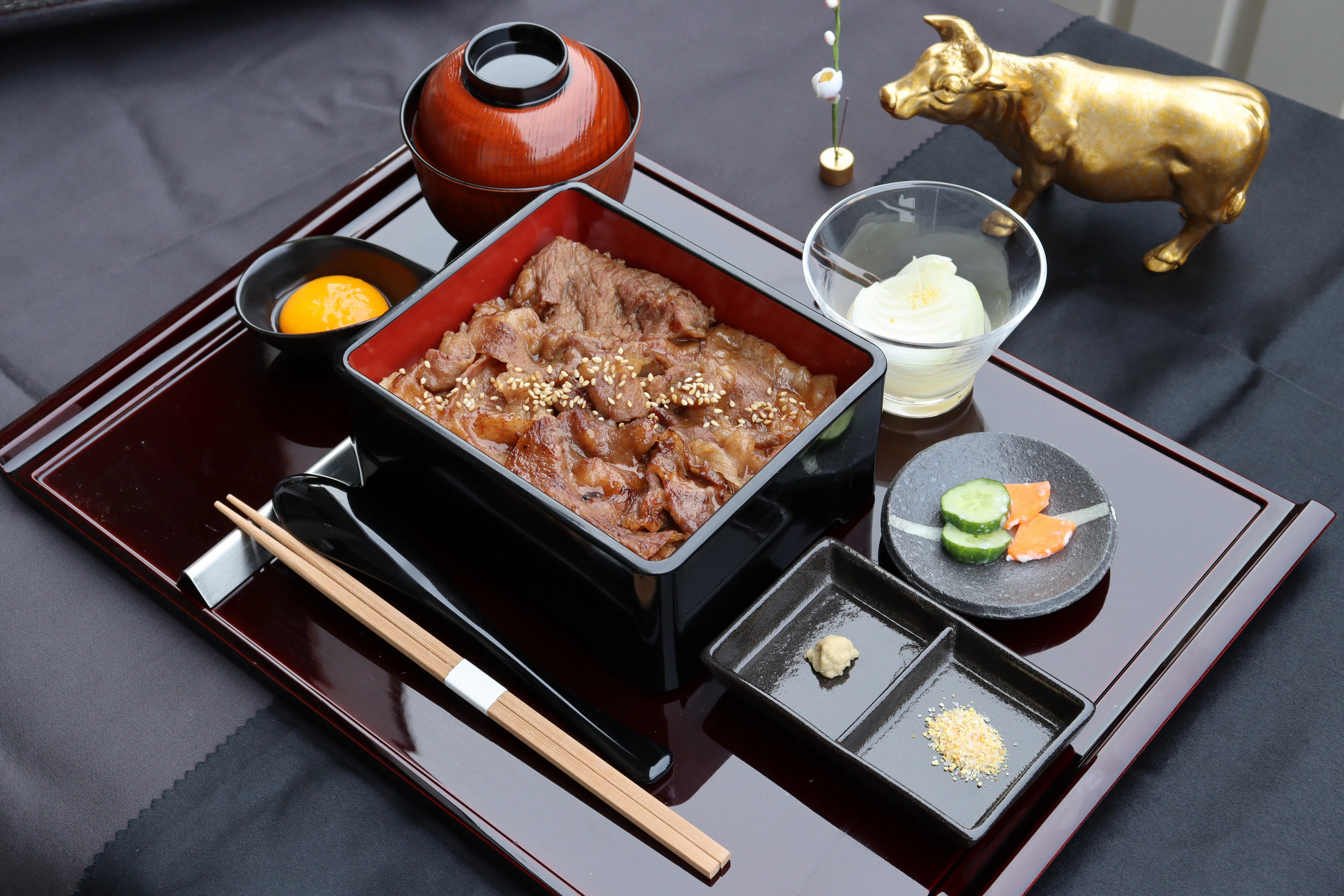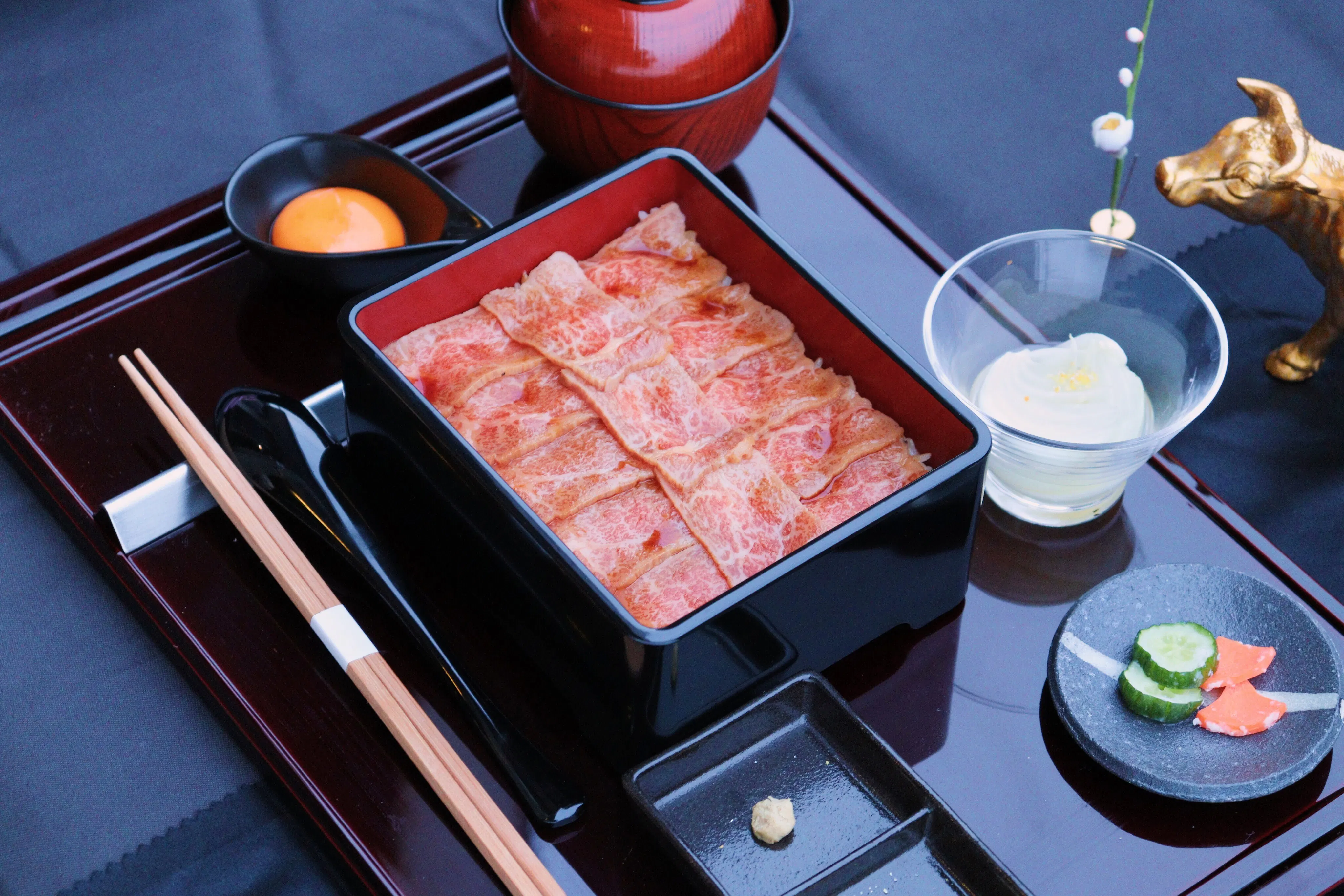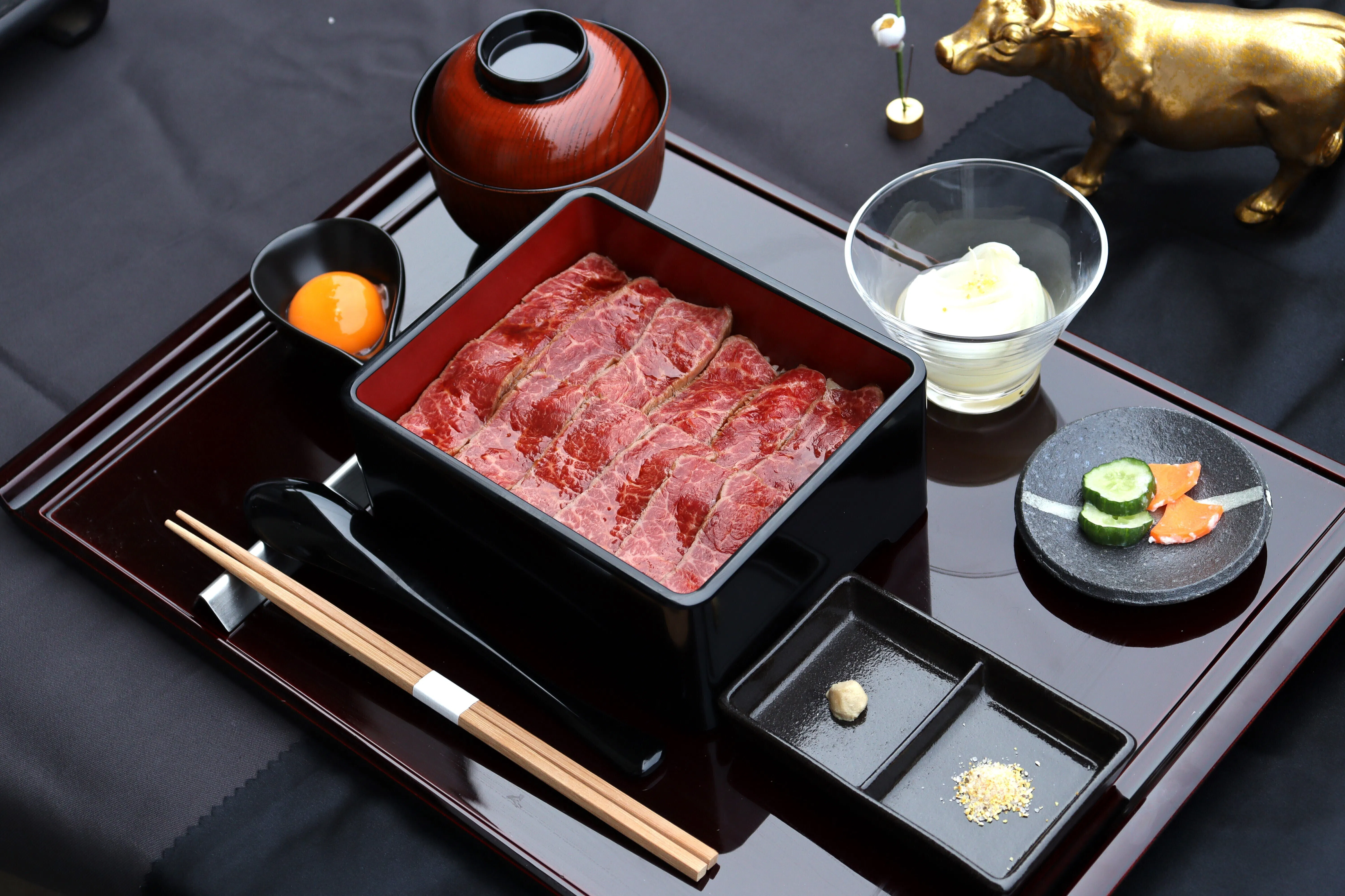 そんな高価なお重を食べてに来てくださるお客様の期待に応えられるような、レアステーキ重の味、空間、接客をご提供できるように今後とも努力を惜しまずやっていきたいと思っています。