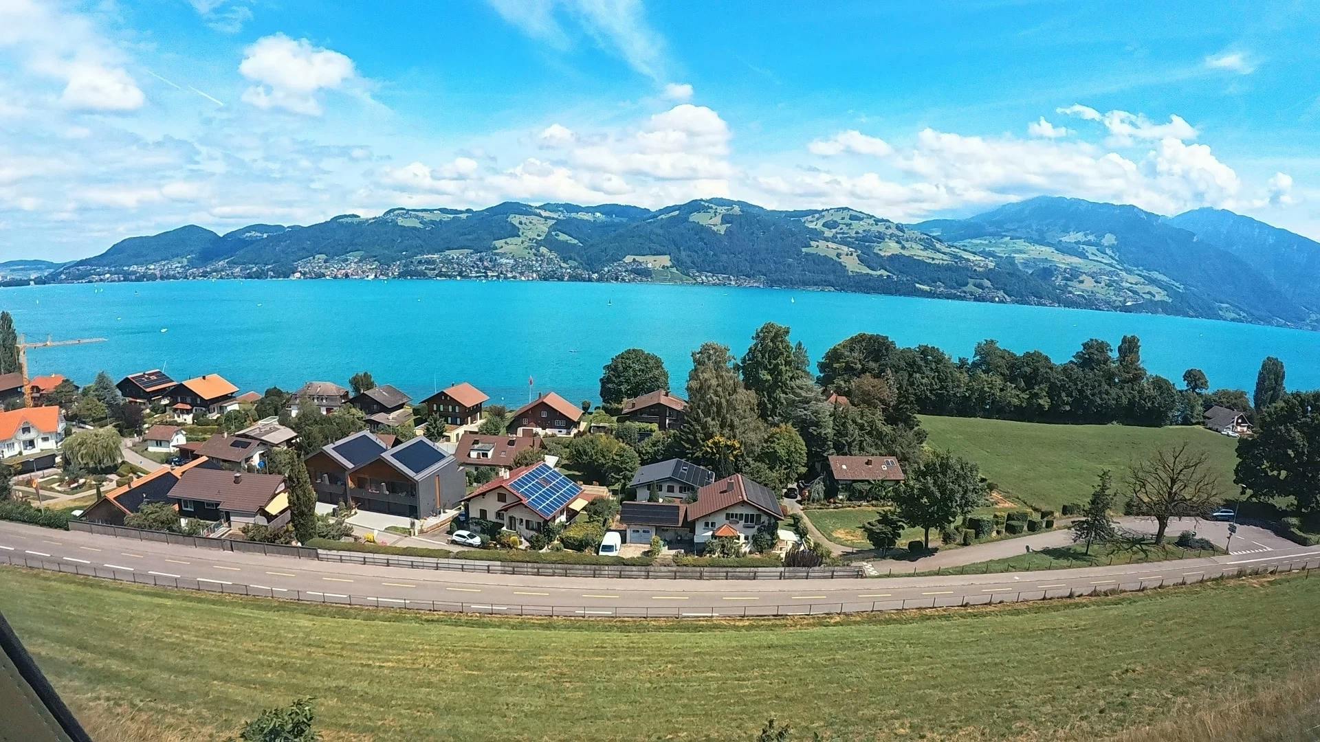 スイスのインターラーケンに向かう電車からの景色