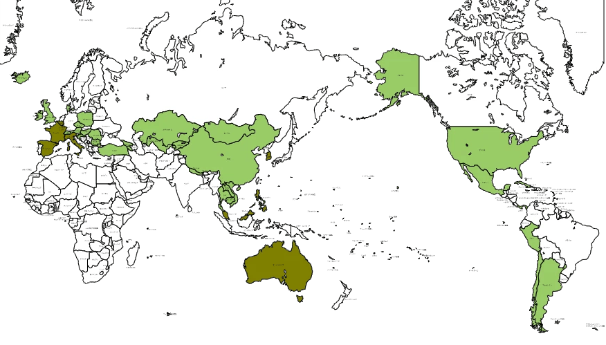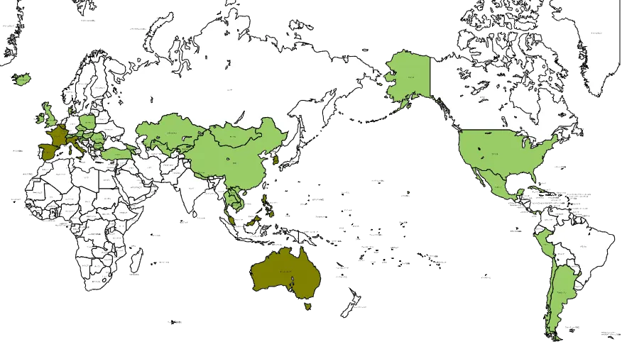 明るい緑が今回行った国
