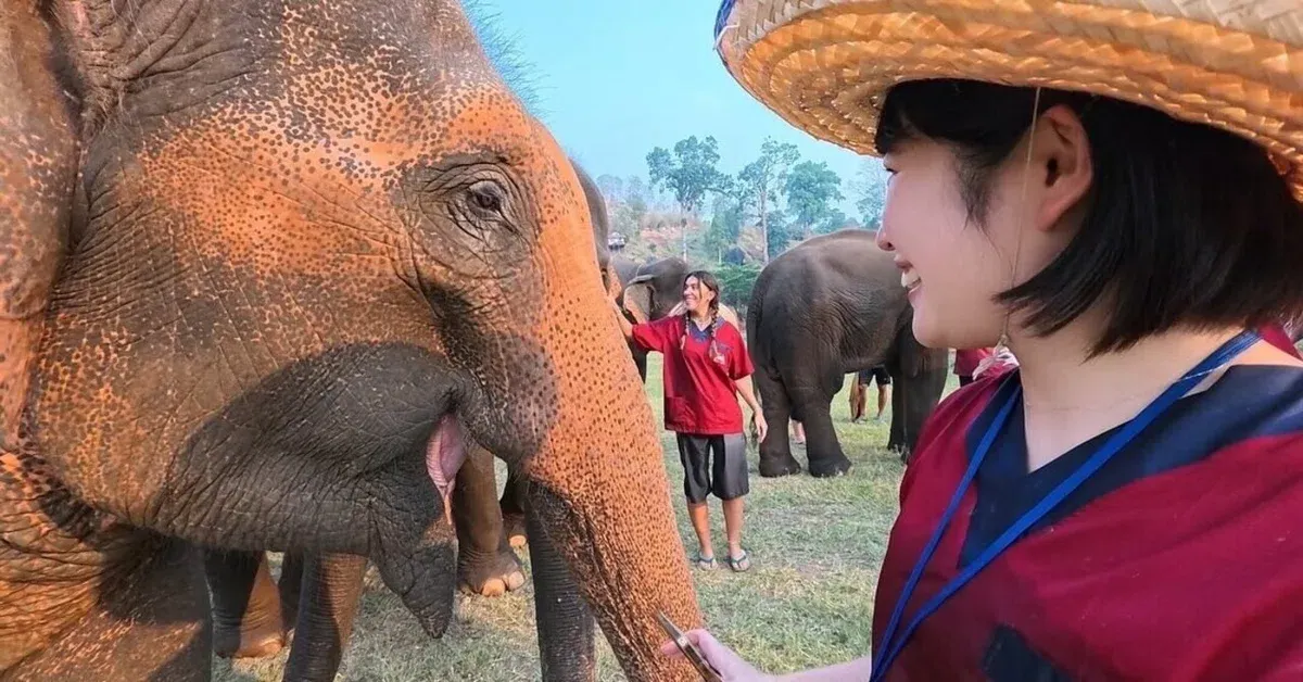 タイのチェンマイで象と触れ合う