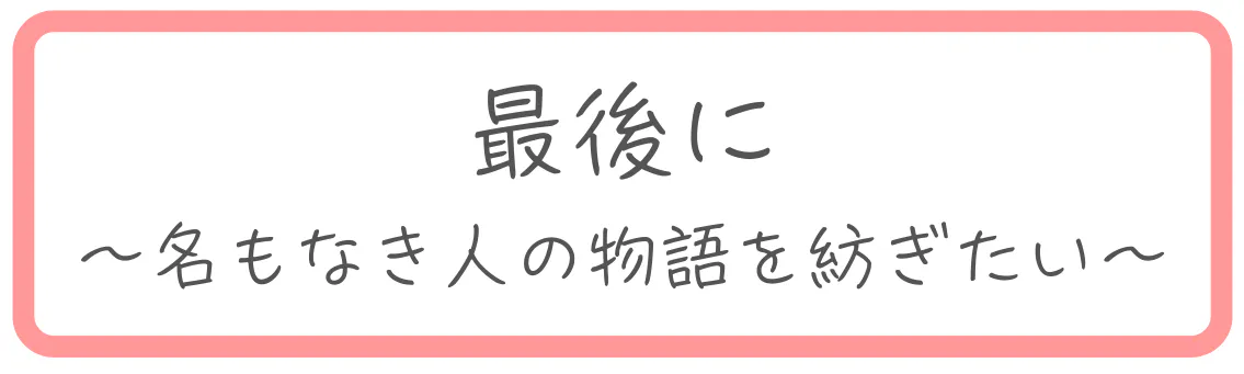 改めてここまで読んでくださって、本当にありがとうございます。
