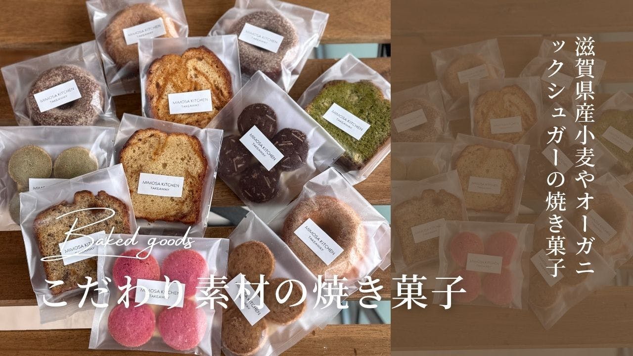 合成甘味料・白砂糖不使用!滋賀県産の小麦や米粉をベースに、オーガニックシュガーとキビ砂糖で仕上げた、身体にやさしい焼き菓子です。ナチュラルな甘さと素朴な味わいがクセになります。