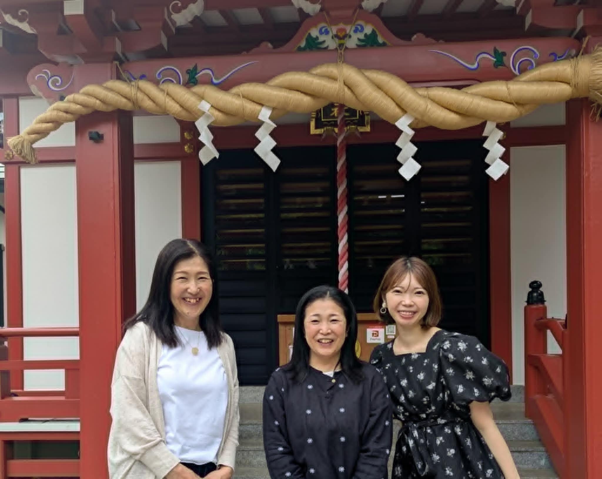 いつも親の会の会場として社務所をお借りしている神社本殿前にて
