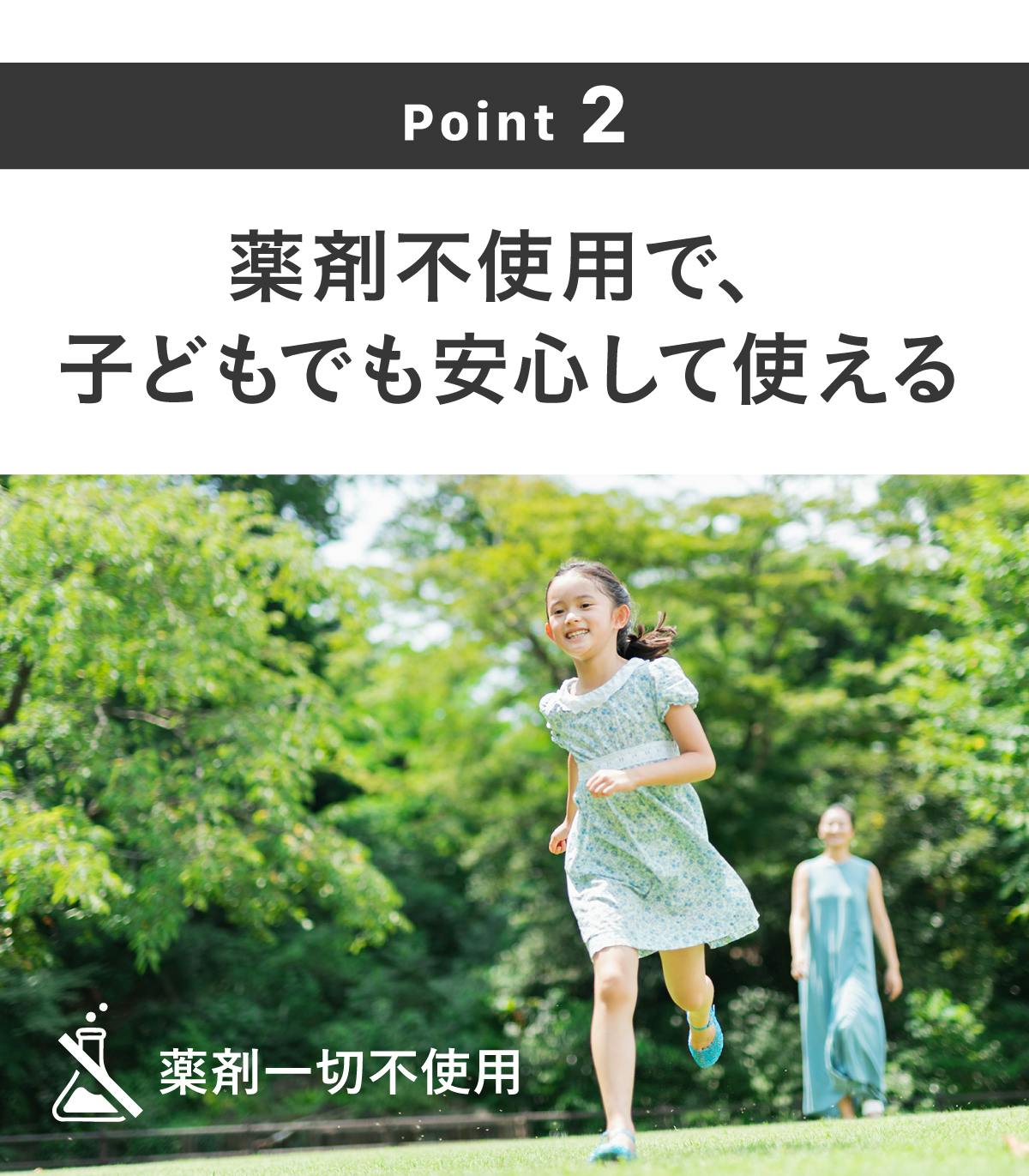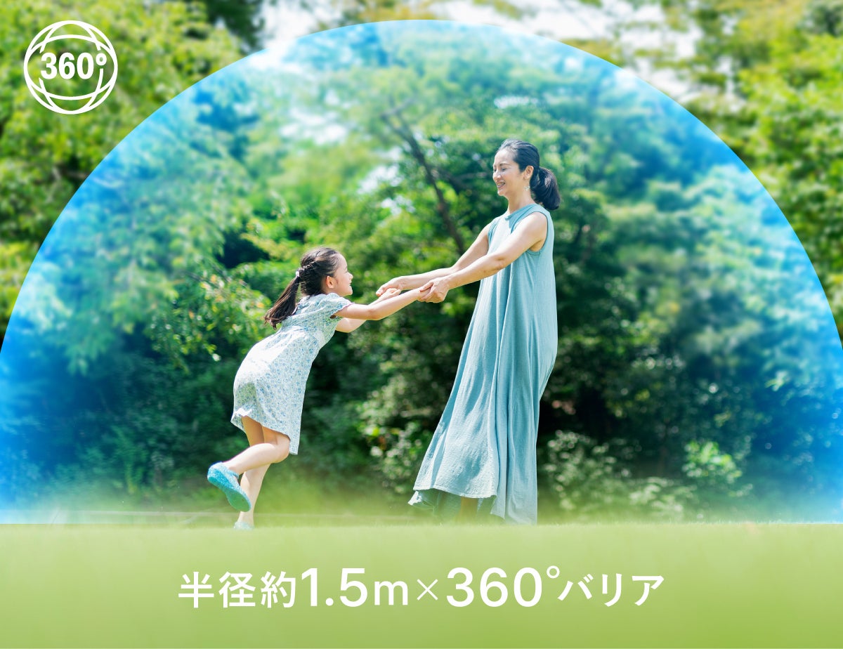 半径約1.5m、全方位360°の範囲に蚊の侵入を防ぐ、見えないバリアを形成します。