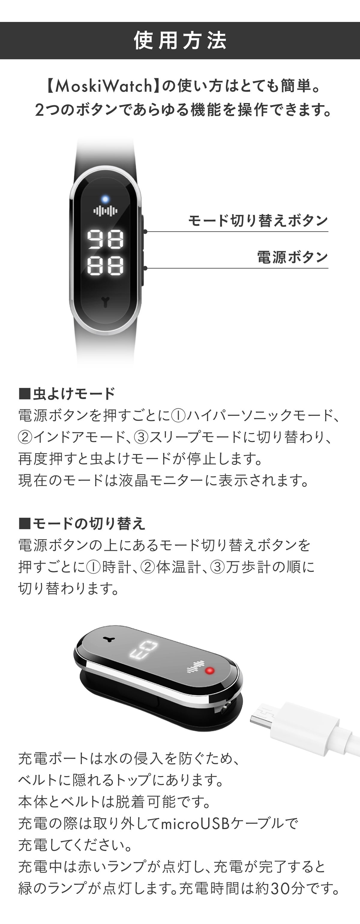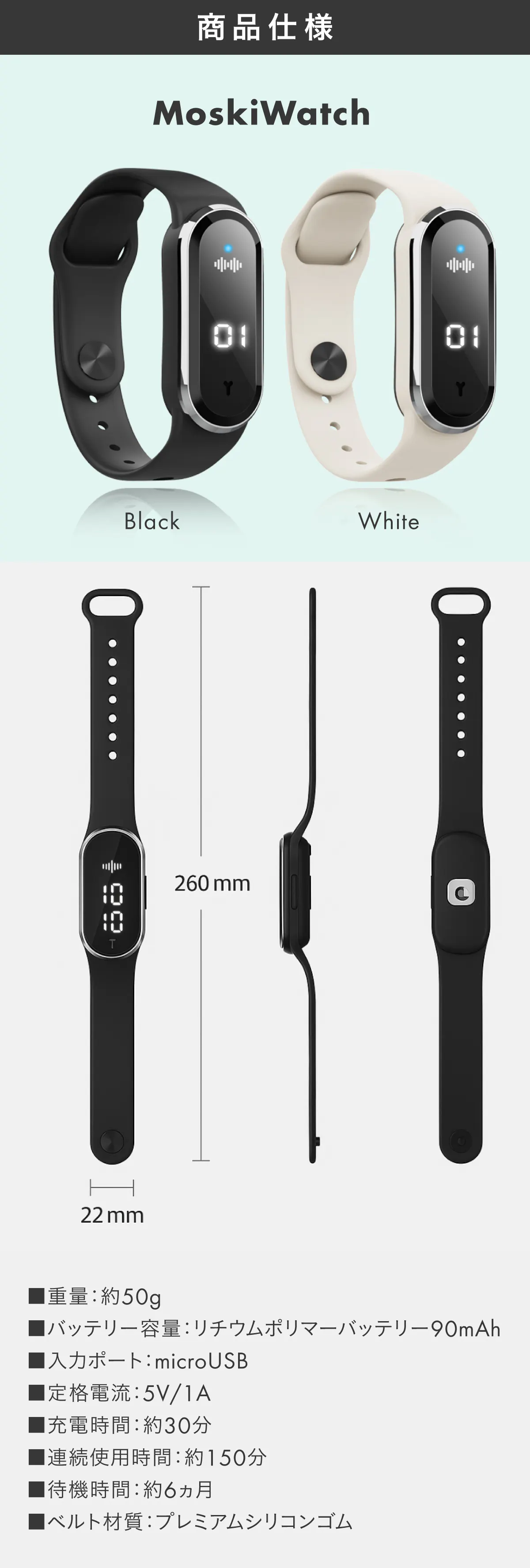 そして、確かな虫除け効果を発揮し、しかも日常手軽に身につけておくことができるアイテムを沢山探し回った中から、多機能蚊よけアイテム「Moski Watch(モスキウォッチ)」の開発に至りました。