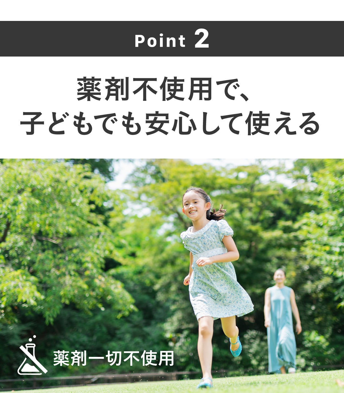大切な人や、子どもたちの肌を徹底的に守り、楽しい時間に全力投球するためにも、安心して使えること(化学薬品などをいっさい使わず、肌に優しい素材)