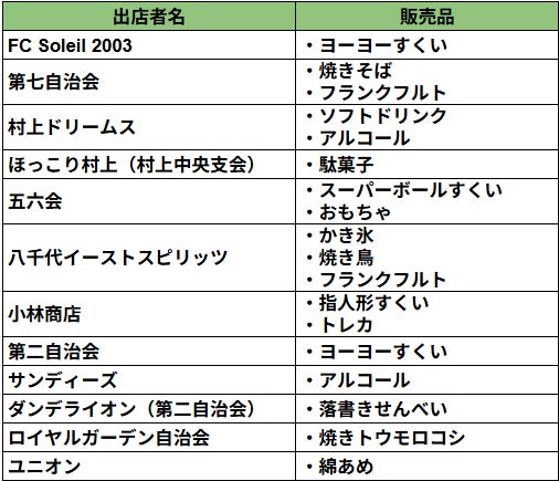 模擬店の出店内容が決定いたしました。全12店にて飲食物やおもちゃ等を販売いたします。ご購入は現金のみとなりますのでご注意ください。なお、高額紙幣(1万円札、5千円札)のご利用はご遠慮いただきますようご協力よろしくお願いいたします。一昨年・昨年と飲食物が早めに無くなってしまいましたので、今年はより多くの仕入れを各店舗へ依頼しております。ぜひ皆様楽しみにお越しください!!!